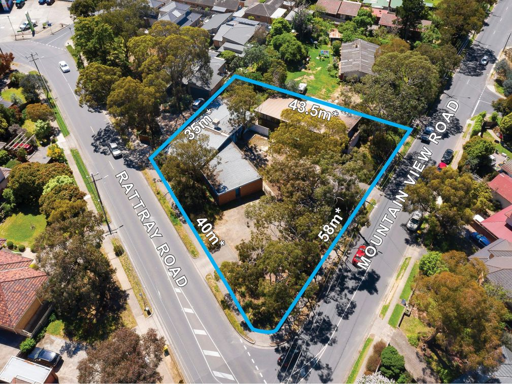The opportunities are endless with this unique corner site in the heart of Montmorency for Sale via Expressions Of Interest closing Thursday 10th December 3pm. Constructed with terracotta brick, glass windows and cathedral ceilings, the existing property is unique on all levels. The property comprises two separate buildings, a single level church/hall of 216m2* and a kindergarten of 263m2* with a landscaped playground shade structure. The property also features a generous 40m* frontage to Rattray Road and a 58m* frontage to Mountain View Road.