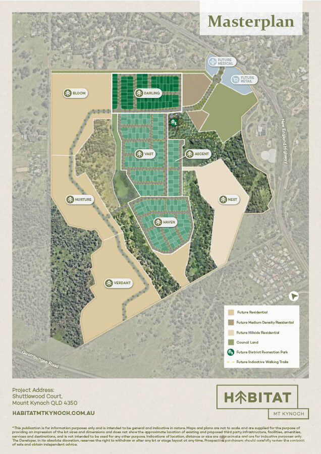 - Prominent 22,614m² site at entrance to Habitat Mt Kynoch residential subdivision