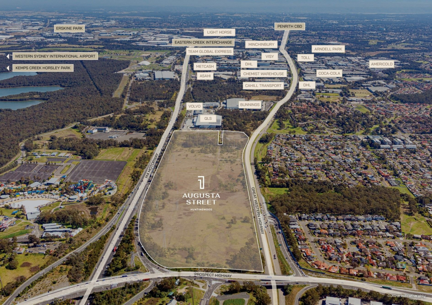 • Prominent exposure: Exceptional visibility with over 1 kilometre of frontage to the M4 Motorway and Great Western Highway, with approved access via a signalised intersection on the Great Western Highway and Flushcombe Road.