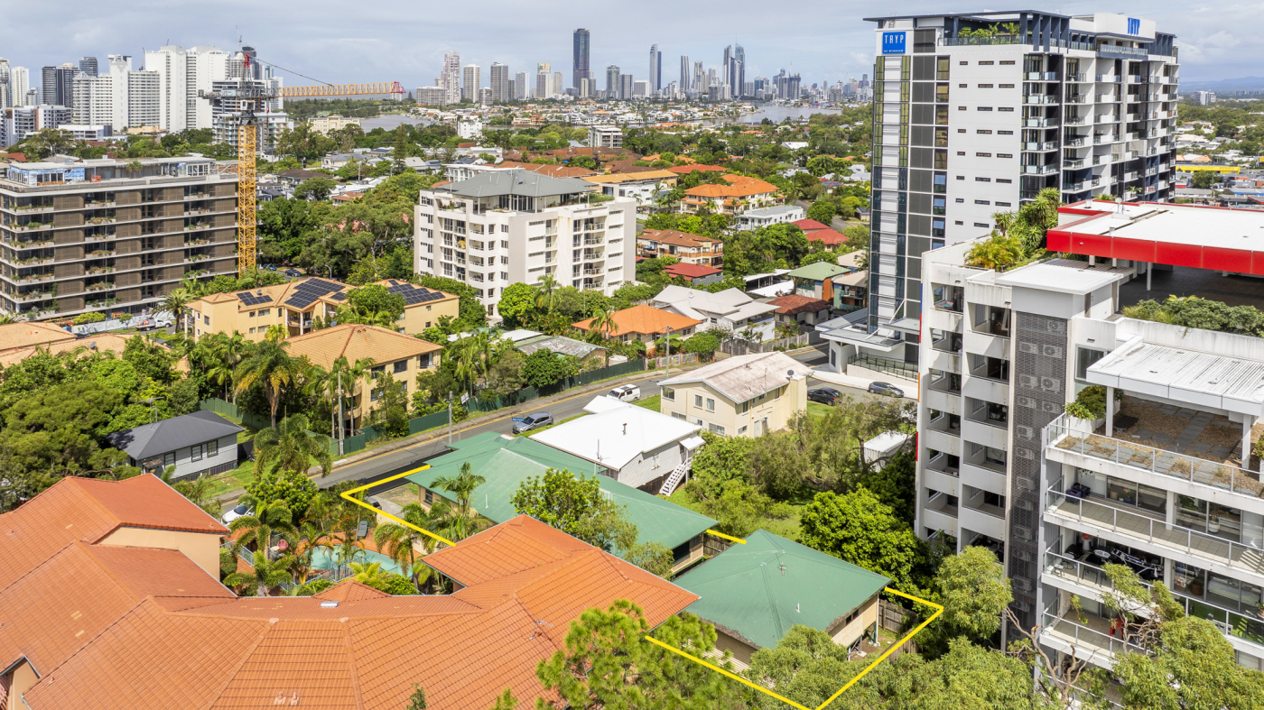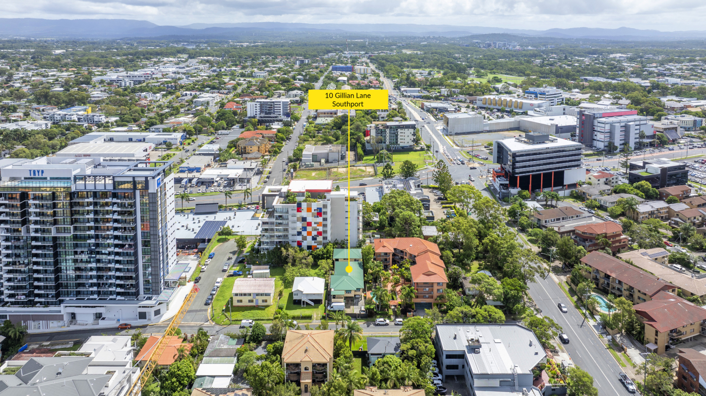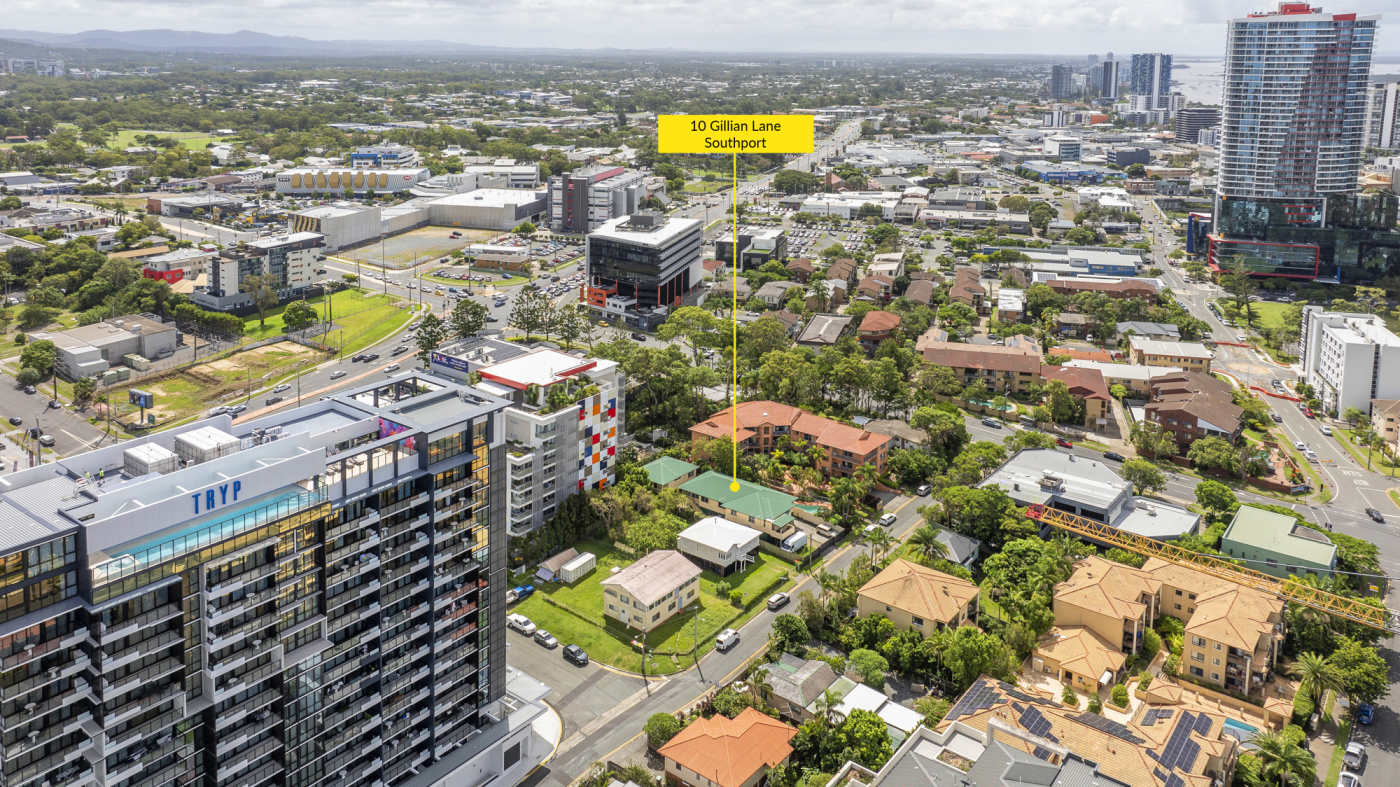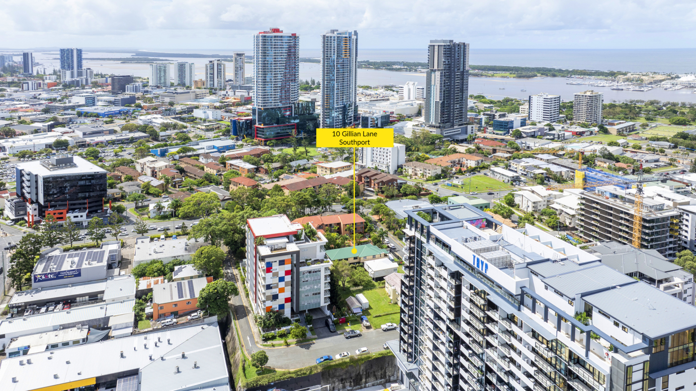•Michael Willems and Matt Taylor from RWC Gold Coast present 10 Gillian Lane, Southport for sale via Public Auction. This is truly a unique and irreplaceable opportunity to purchase a 589m2* elevated development site located within walking distance to the Southport CBD and an array of world-class amenities including the Australia Fair Shopping Centre, Gold Coast Light Rail, Broadwater parklands, and numerous café, retail, food, beverage, and entertainment venues. With the site positioned within the Southport Priority Development Area, it provides an expansive canvas with endless options for the visionary developer!