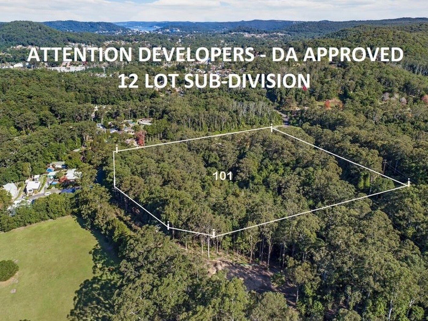 Rarely does an opportunity exist to secure a DA approved 12 lot sub-division in a sought after location with a semi-rural setting. Block sizes are generous throughout and range from a minimum size of 650sqm up to the largest 18,900sqm which has the potential to be sub-divided into a few extra blocks (STCA).