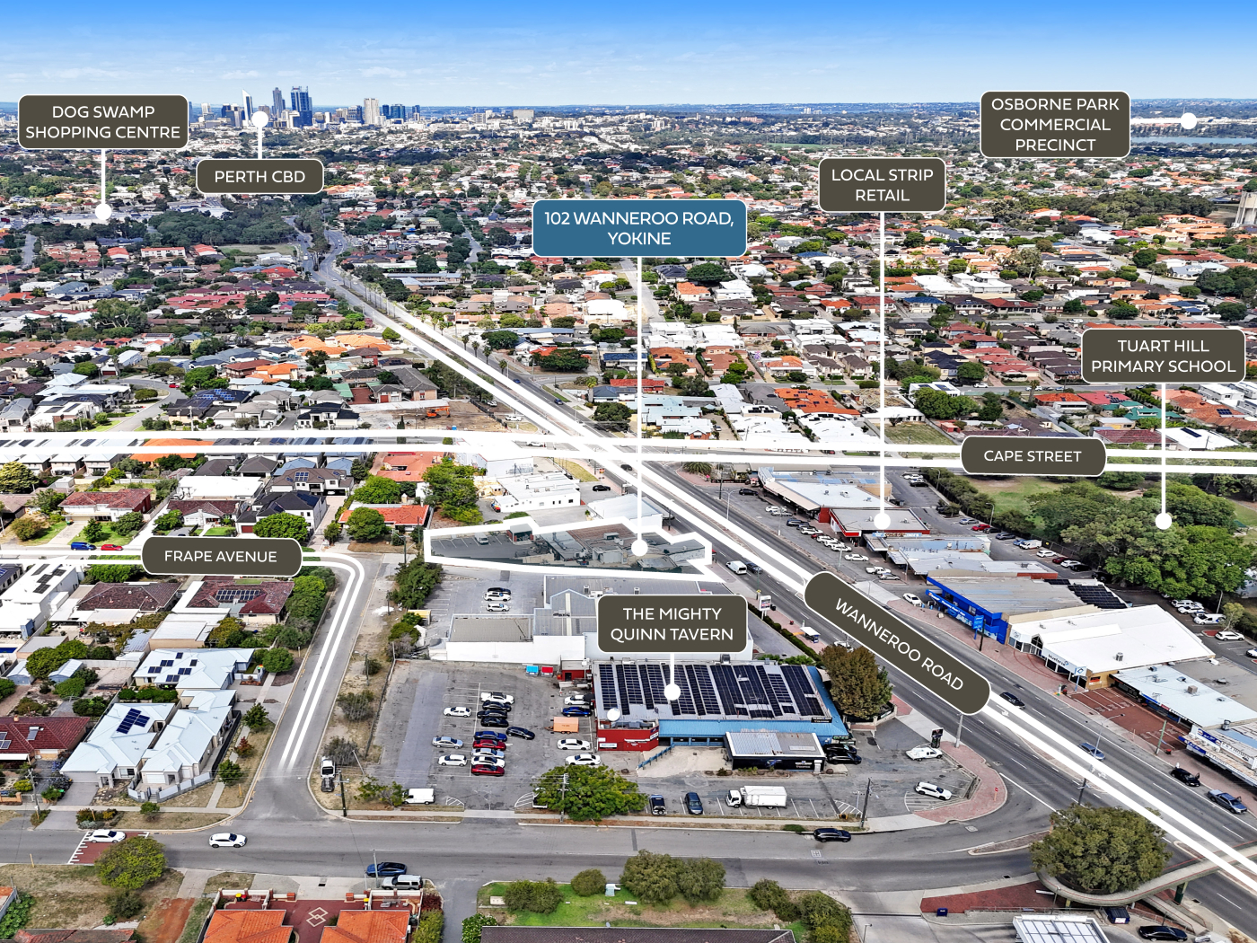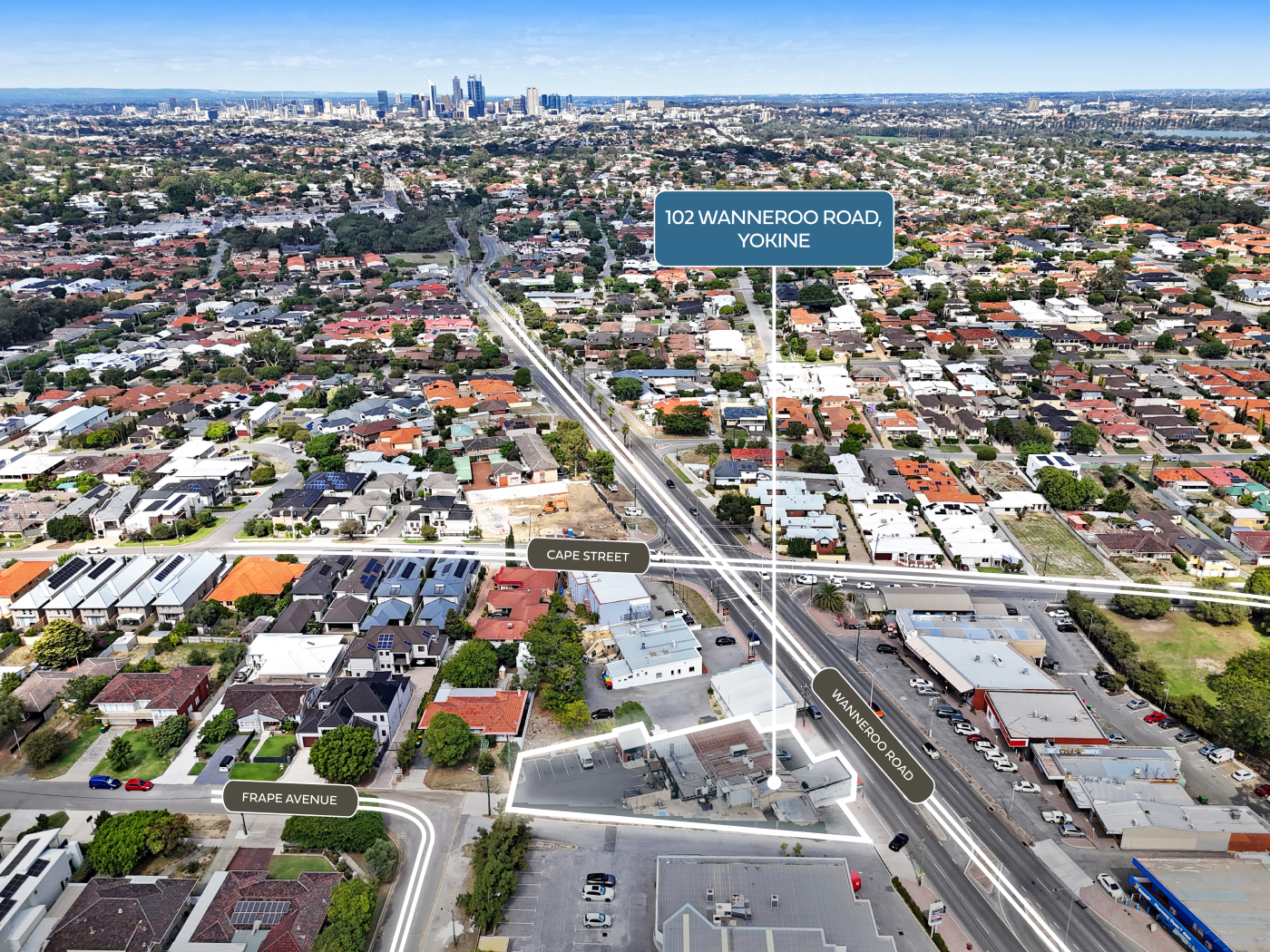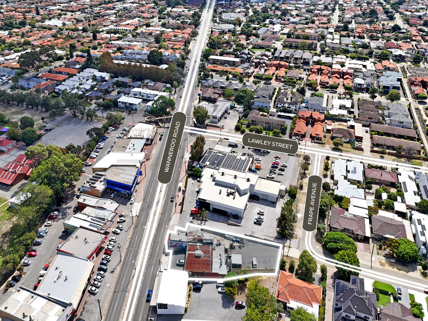 The site benefits from dual access via Wanneroo Road and Frape Avenue, supporting flexible site planning and efficient vehicle circulation, and enhancing its suitability for a range of future development configurations.