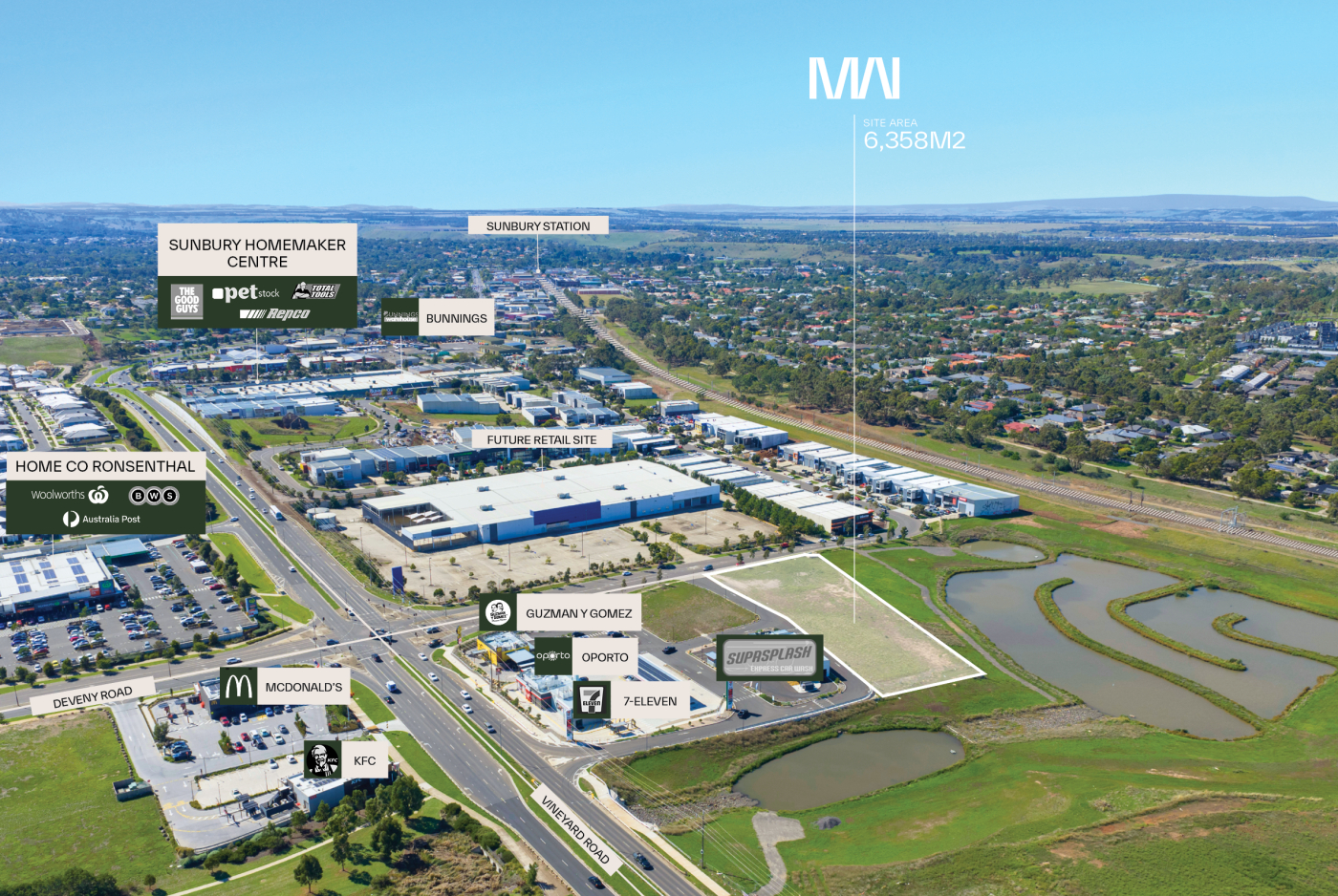 > 6,358m2 landholding with Deveny Road frontage and direct access to the Vineyard Road retail corridor