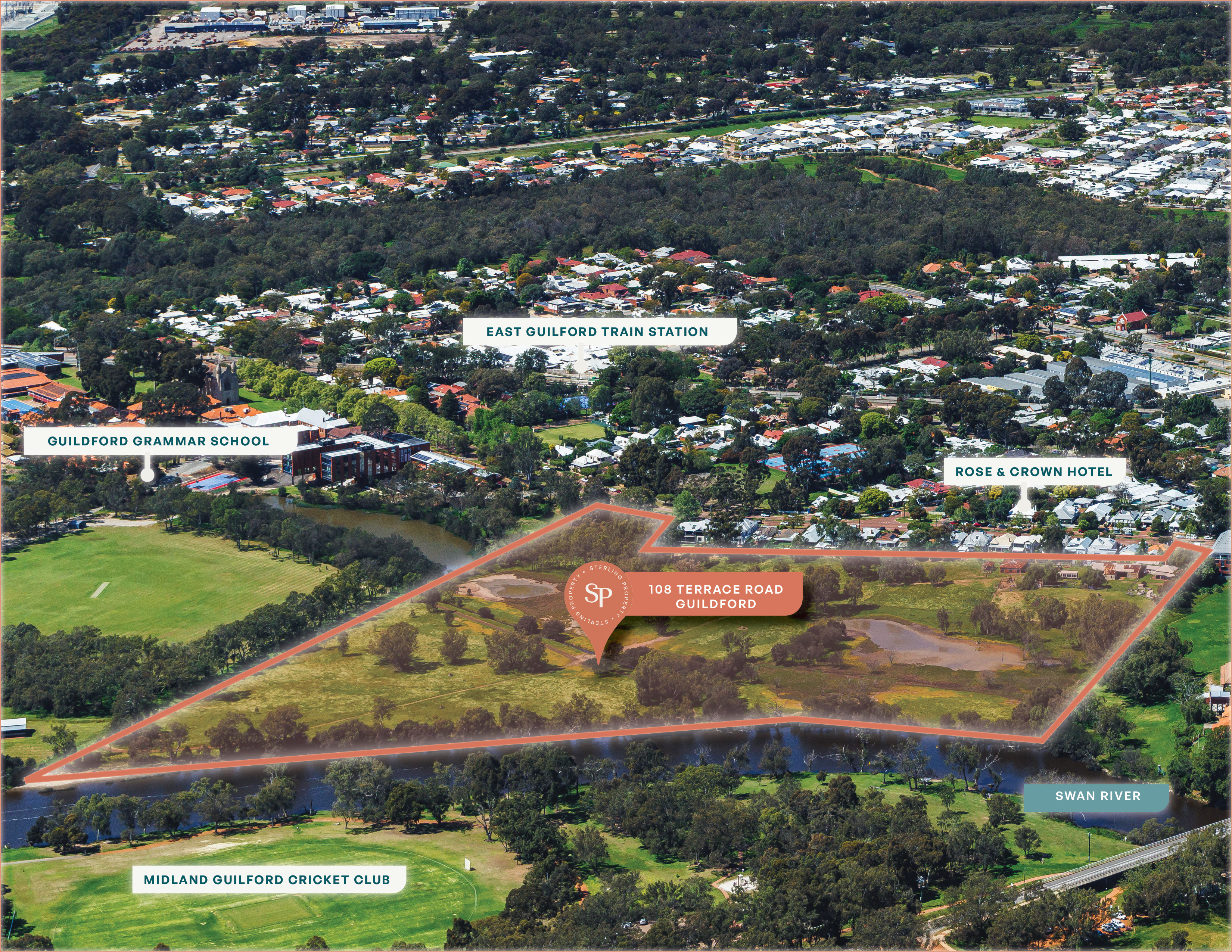 Positioned in the heart of Guildford, this remarkable 9.23 hectare (approx.) property offers substantial frontage to the Swan River and exceptional scale rarely available within such a tightly held and historically significant precinct.