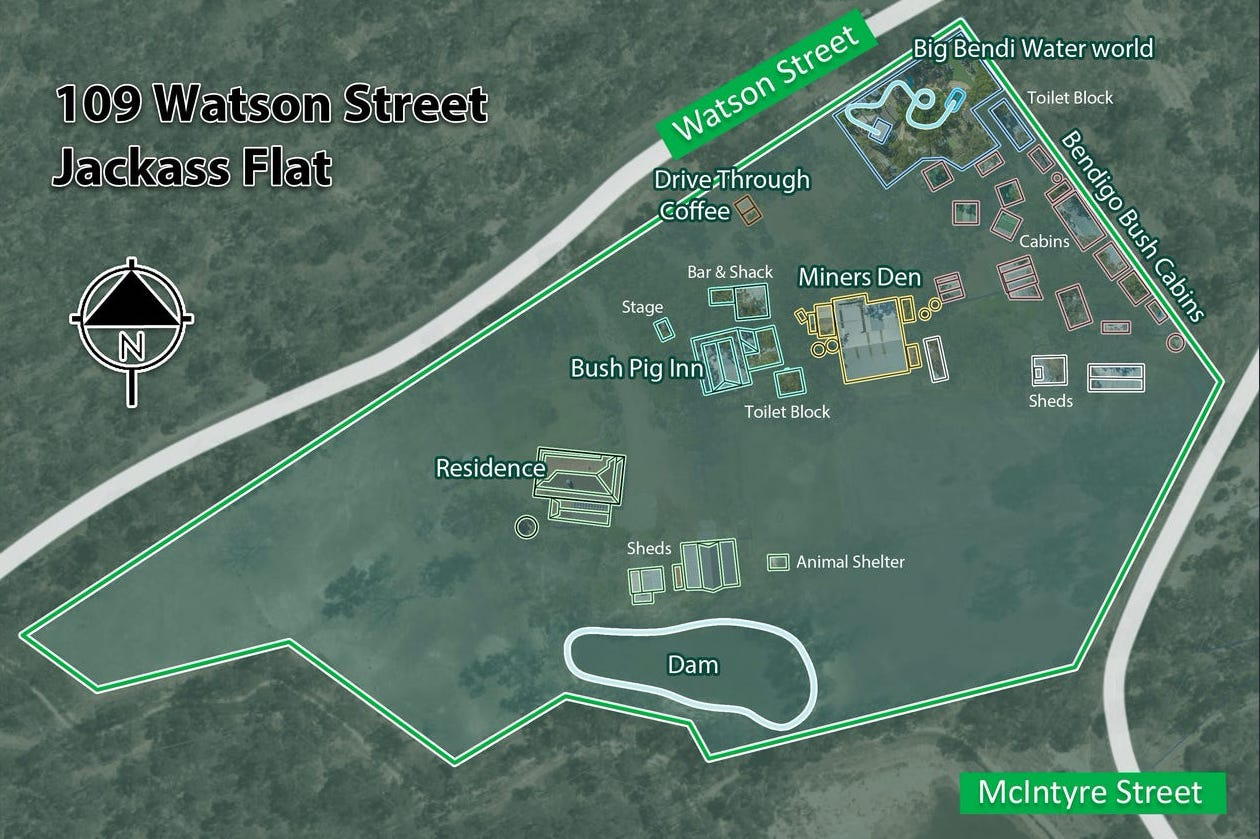 * Retail enterprises currently operating from the site (Pub, waterslide, retail shops and accommodation facility)