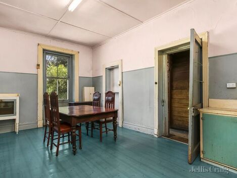 Surviving 153 years of use and eclectic extensions, this sensational heritage listed building boasts origins as the Broadmeadows District Roads Board and Shire Hall with a build date C.1866. The original and impressive bluestone structure incorporates an exquisite veranda and slate roof, with unique granite feature stones alternating within the steep east-facing gable, windowsills, front doorstep and framing the striking front door entry. A brick extension whispers of the Federation era with its sun-ray timber fretwork, with a rear weatherboard addition that evokes images of a more residential repurposing.