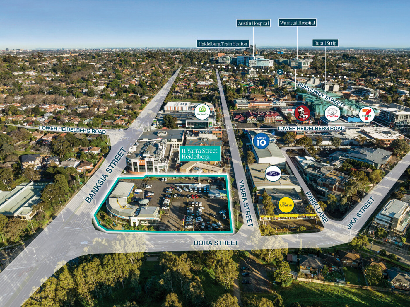 Surrounded by major infrastructure and health facilities such as the Austin Hospital Health precinct, Dorevitch Pathology and Warringal Hospital. Only 900 metres to Heidelberg Train Station providing direct connectivity to the Melbourne CBD, plus multiple bus services along Banksia Street and Lower Heidelberg Road.