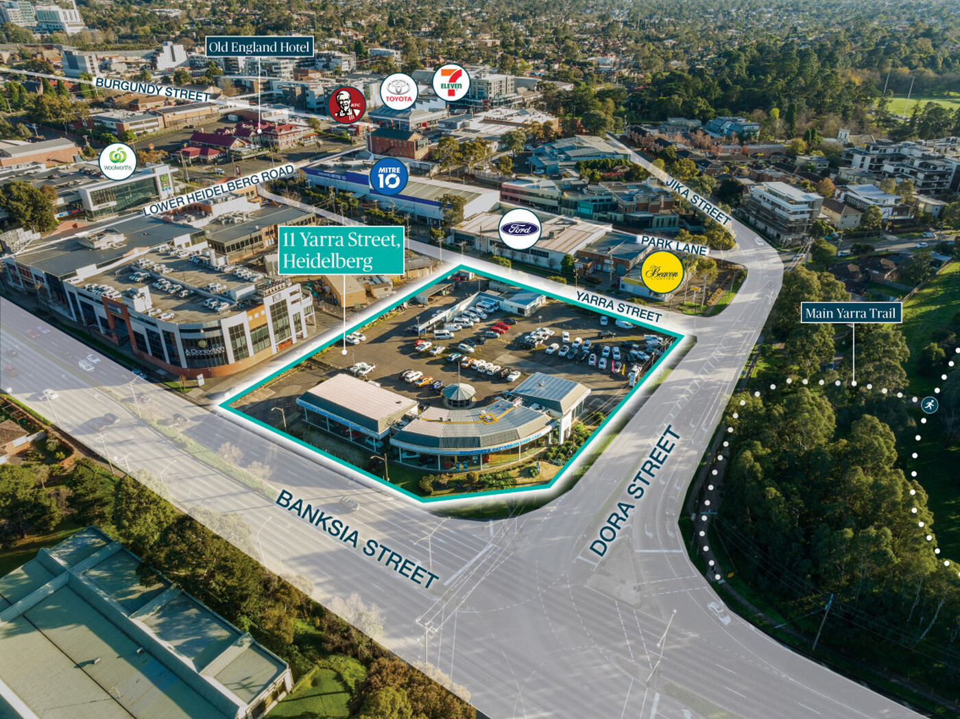 * Boasting unrivalled exposure with three street frontages to Banksia Street, Dora Street and Yarra Street totalling 250+ metres
