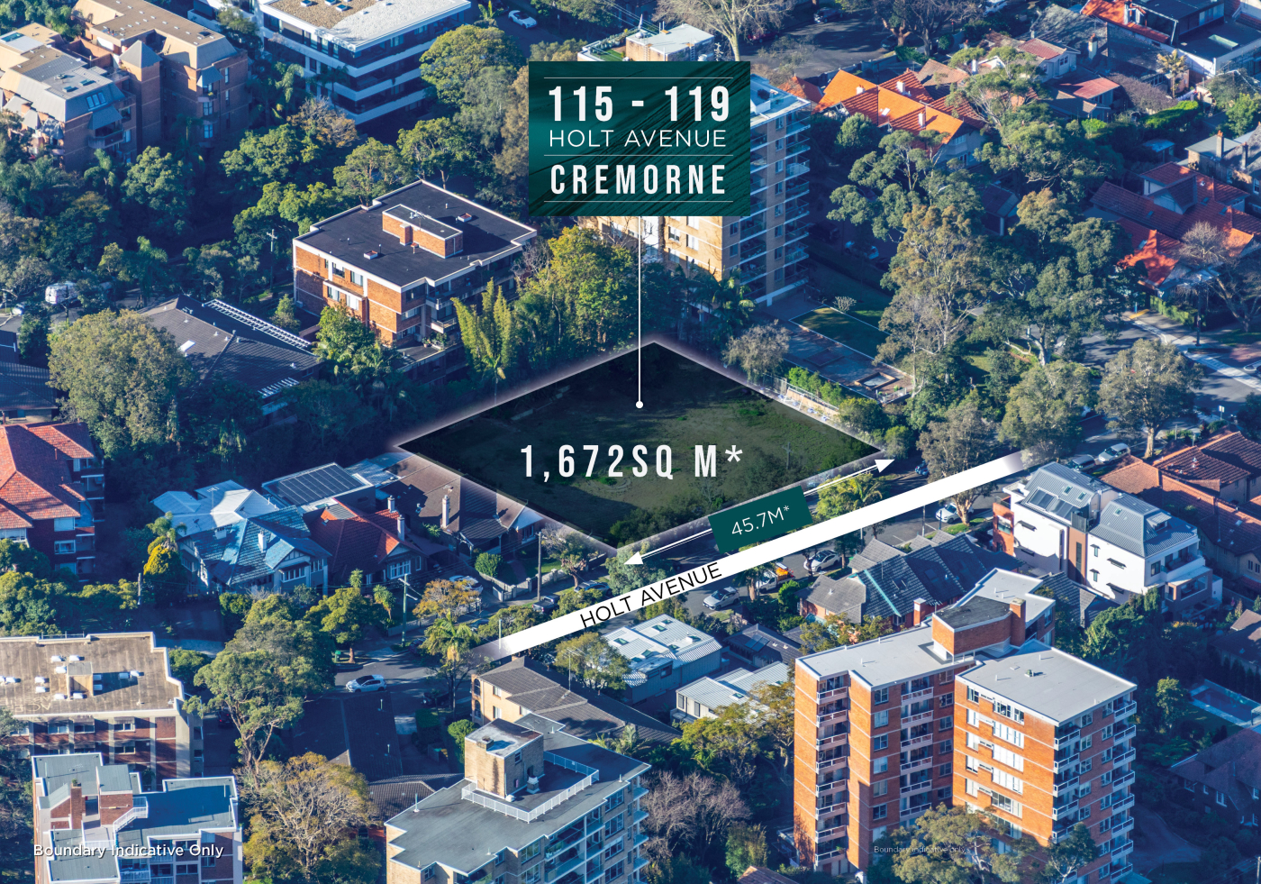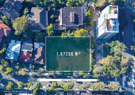 - Total site area of 1,672sq m*, benefitting from an impressive 45.7 metre* frontage to Holt Avenue, providing views toward the Sydney CBD