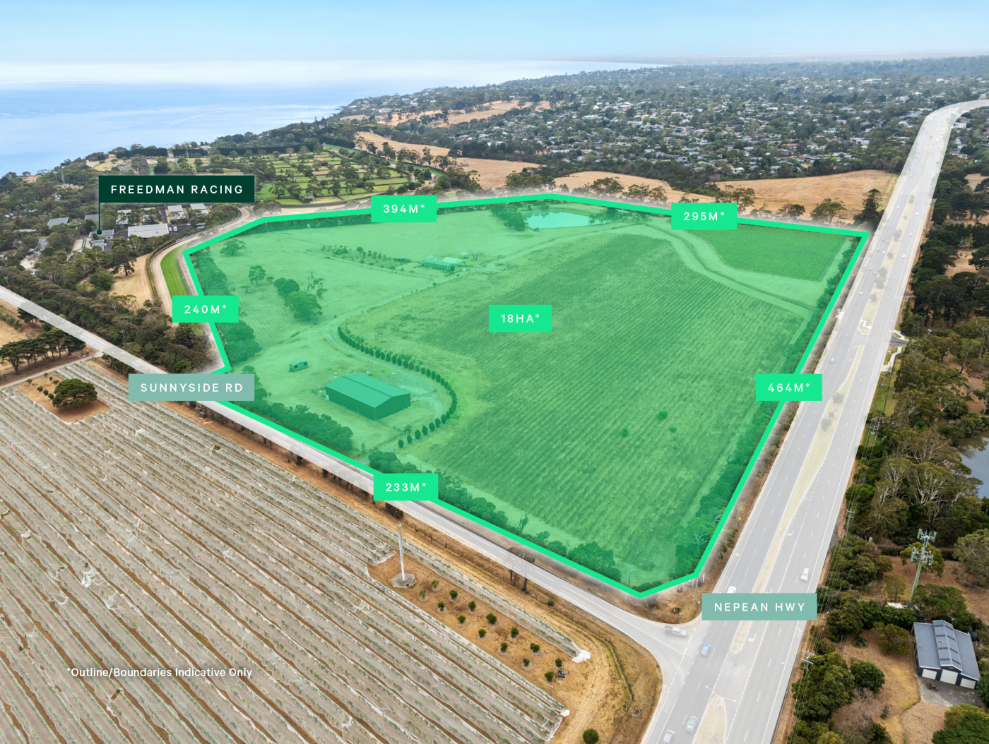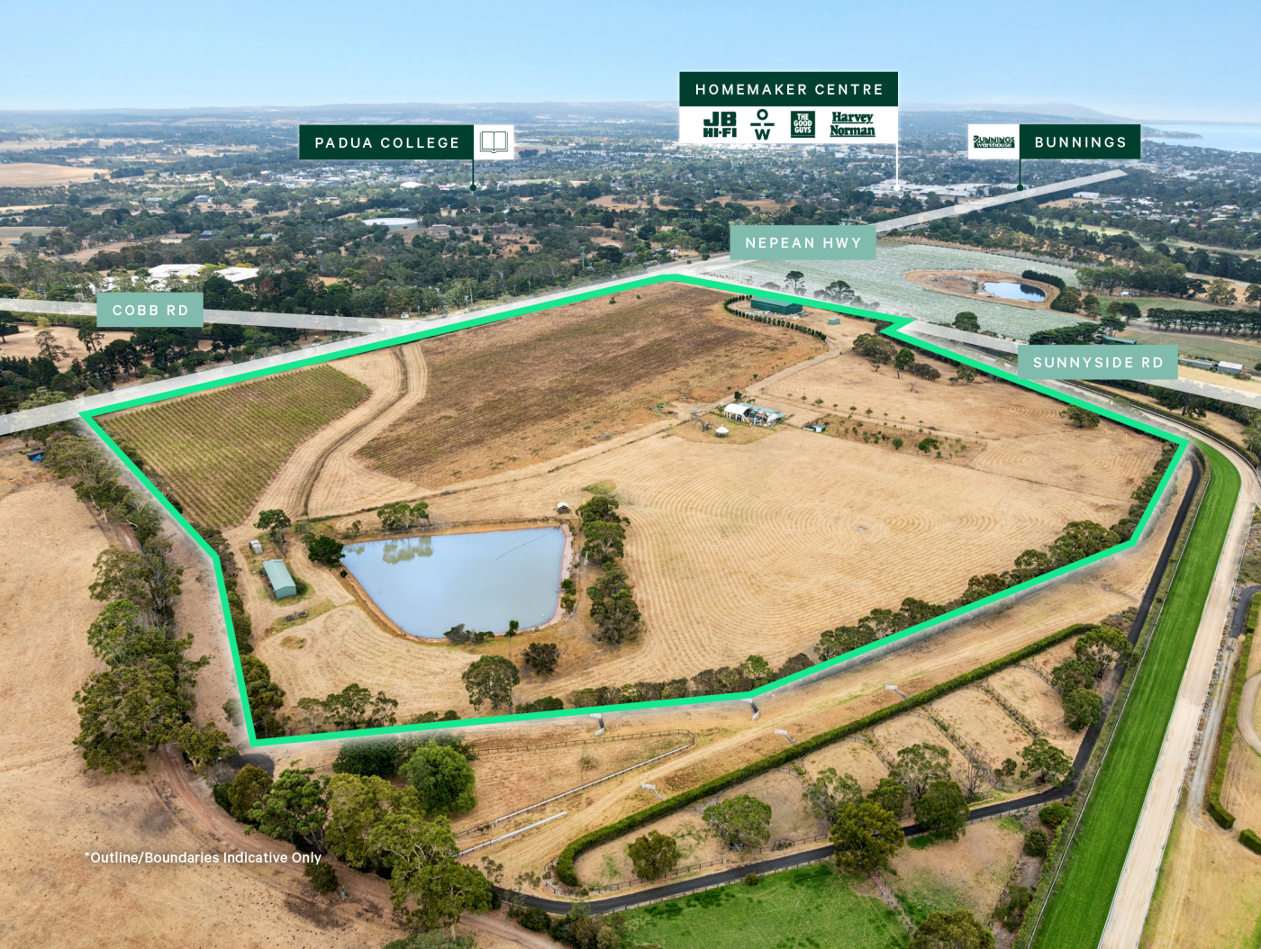 + 18ha* corner landholding in one of Victoria's most prestigious locations, less than 50 minutes' drive from the Melbourne CBD