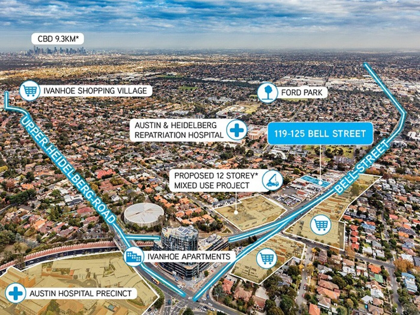 Colliers International are pleased to offer 119-125 Bell Street, Ivanhoe for sale by Expressions of Interest closing Thursday 21st of June at 3pm. This outstanding property is located high on Ivanhoe Hill and has been earmarked by council for multi-storey Mixed-use development (STCA).