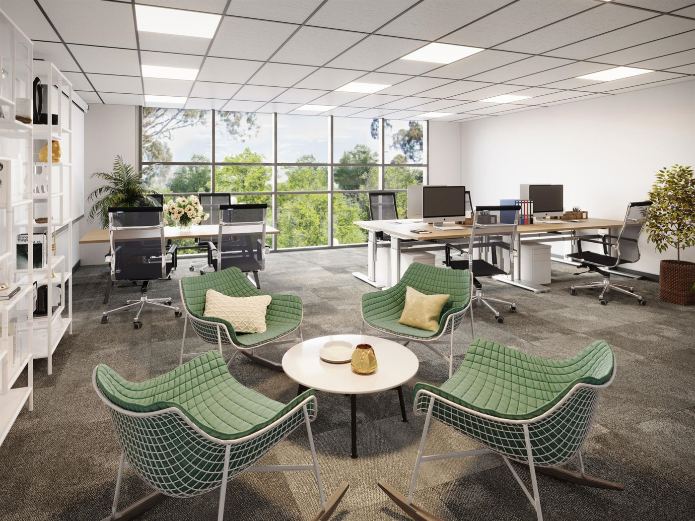 A selection of workspaces all with uninterrupted park views: