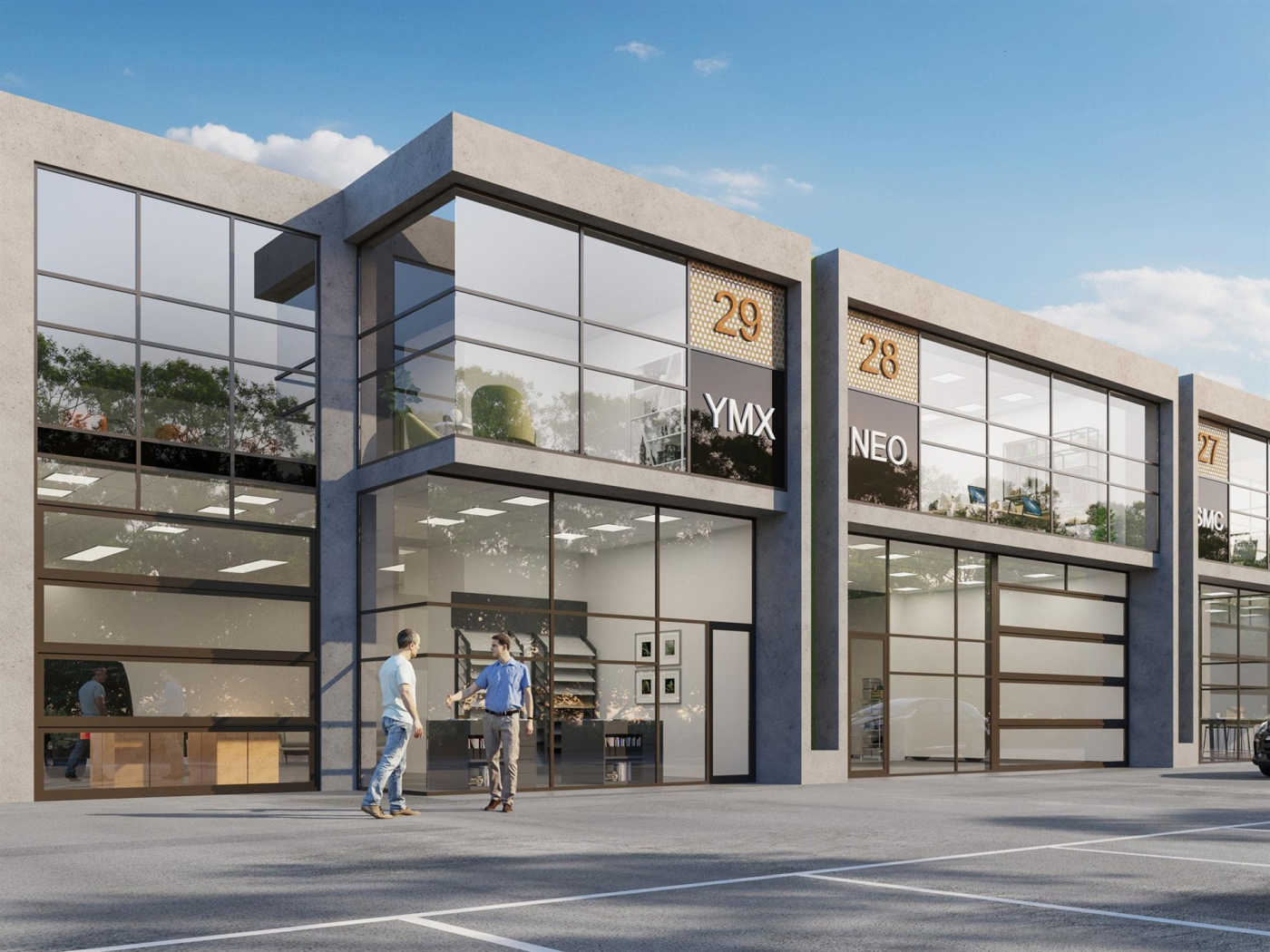 - Office / Warehouse hybrids with Glass Smartech remote door systems and 4.1 metre* clearance out to 8 metre* rear storage areas. Available in two and three level design for those requiring slightly more office.