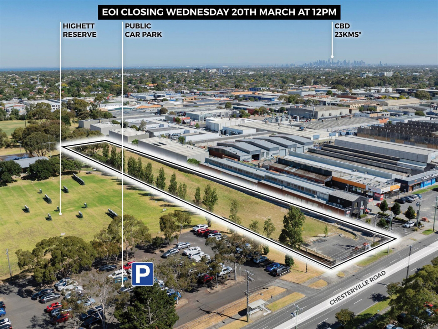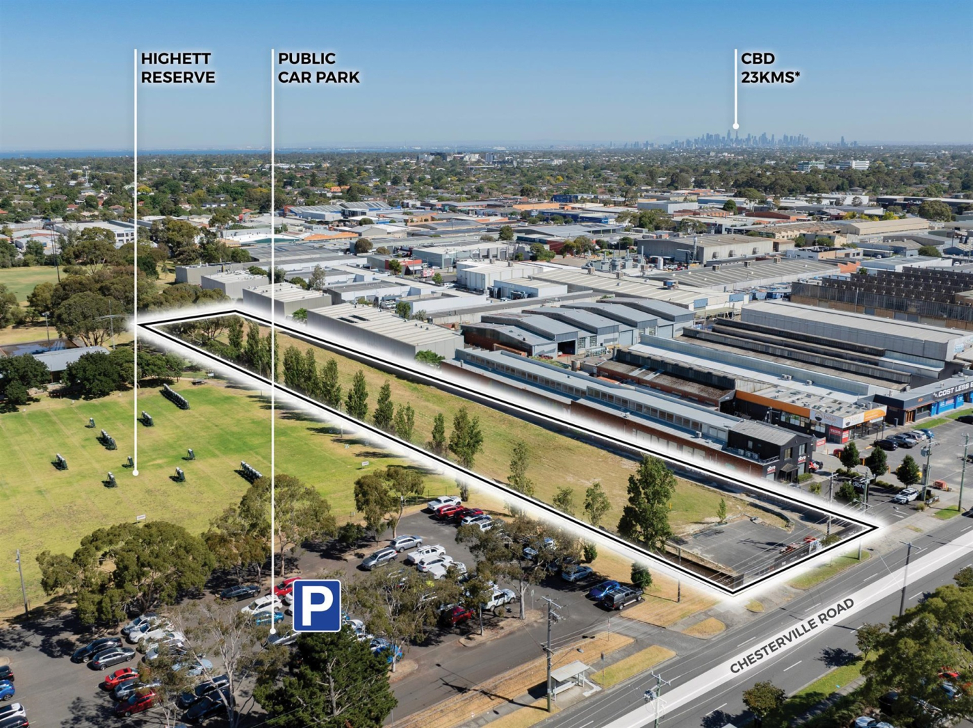 119 Chesterville Rd, presents 9,226 sqm* of Industrial 1 zoned land adjacent to the neighboring parkland to it's south and west. To be sold with a permit for a commercial / industrial development, a brilliantly designed and entirely unique development awaits for the fiercely localized community and an opportunity for developers to acquire a development scenario where all of the heavy lifting and holding time has taken place.