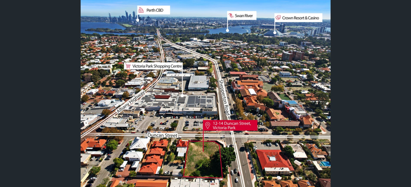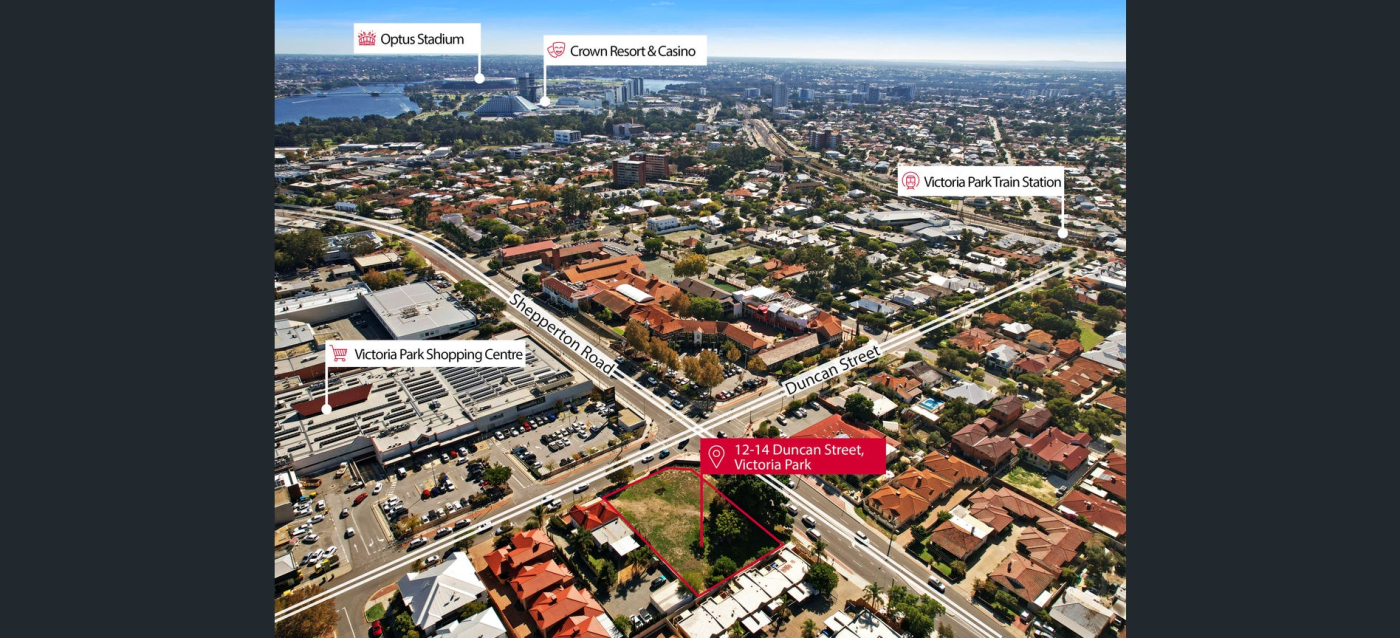 Knight Frank is pleased to present 12-14 Duncan Street, Victoria Park for sale, with the opportunity to acquire a high-profile corner site on the corner of Duncan Street and Shepperton Road.