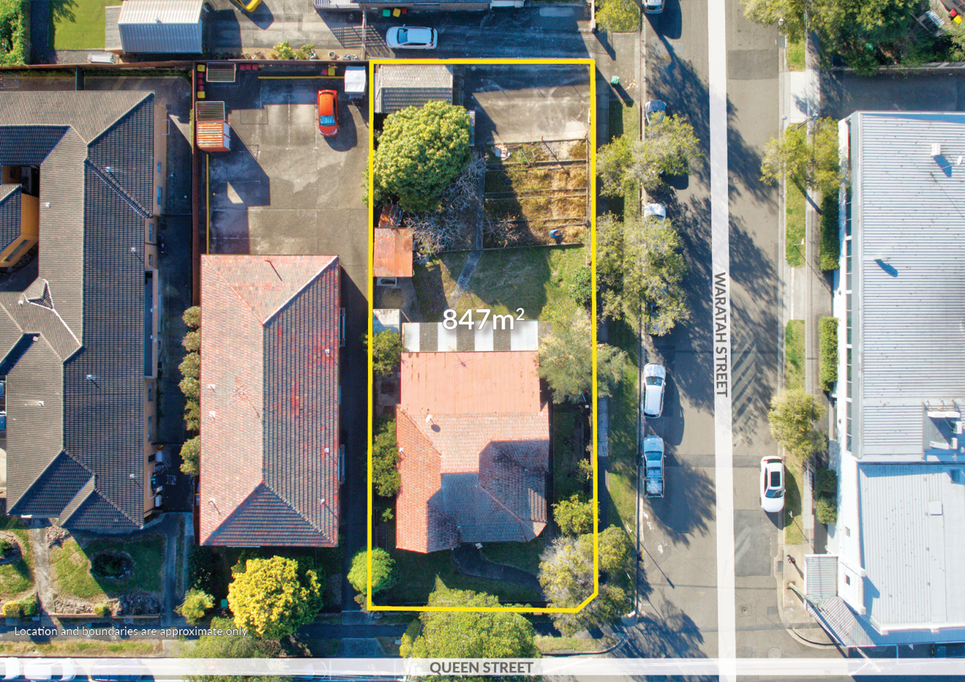 • Prominent 847sqm* corner site (Queen & Waratah Streets)