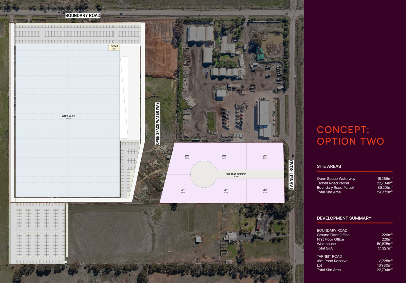 & High-Profile Frontages – Prominent exposure to key arterials, Boundary Road (295m²*) and Tarneit Road (110m²*)