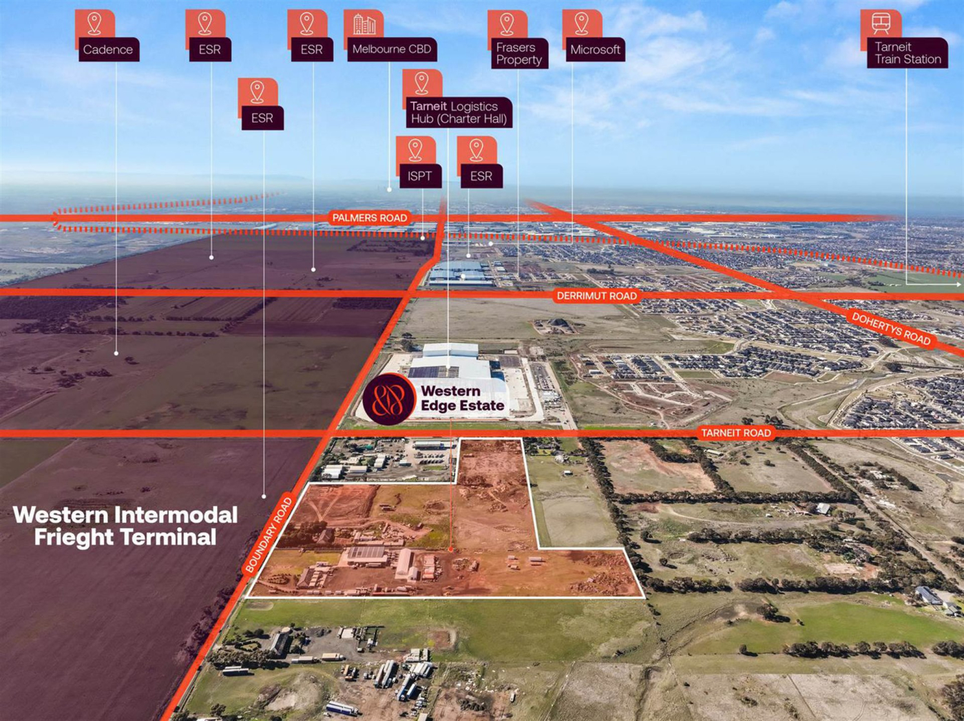 Positioned just 25 km* from the Melbourne CBD, Western Edge Estate offers direct access to the Princes Freeway, Western Freeway, and Western Ring Road, providing seamless connections to the Port of Melbourne, Melbourne Airport, and the broader metropolitan freight network.