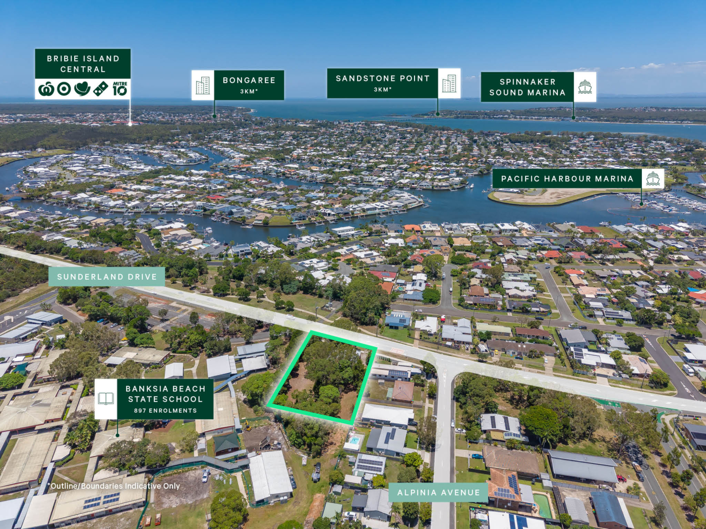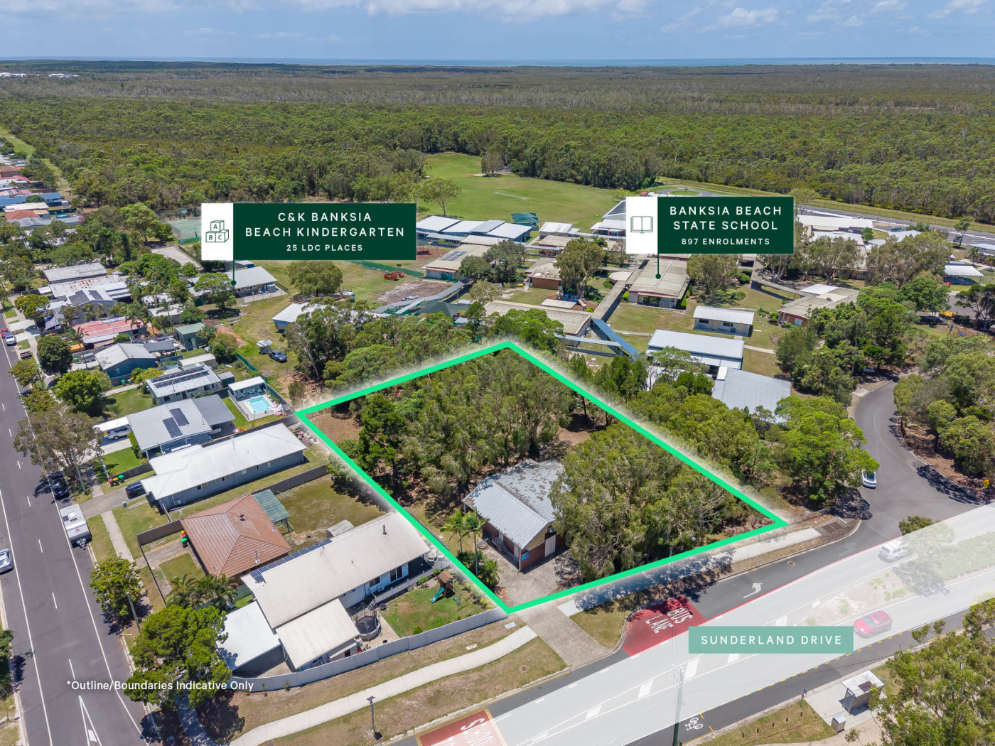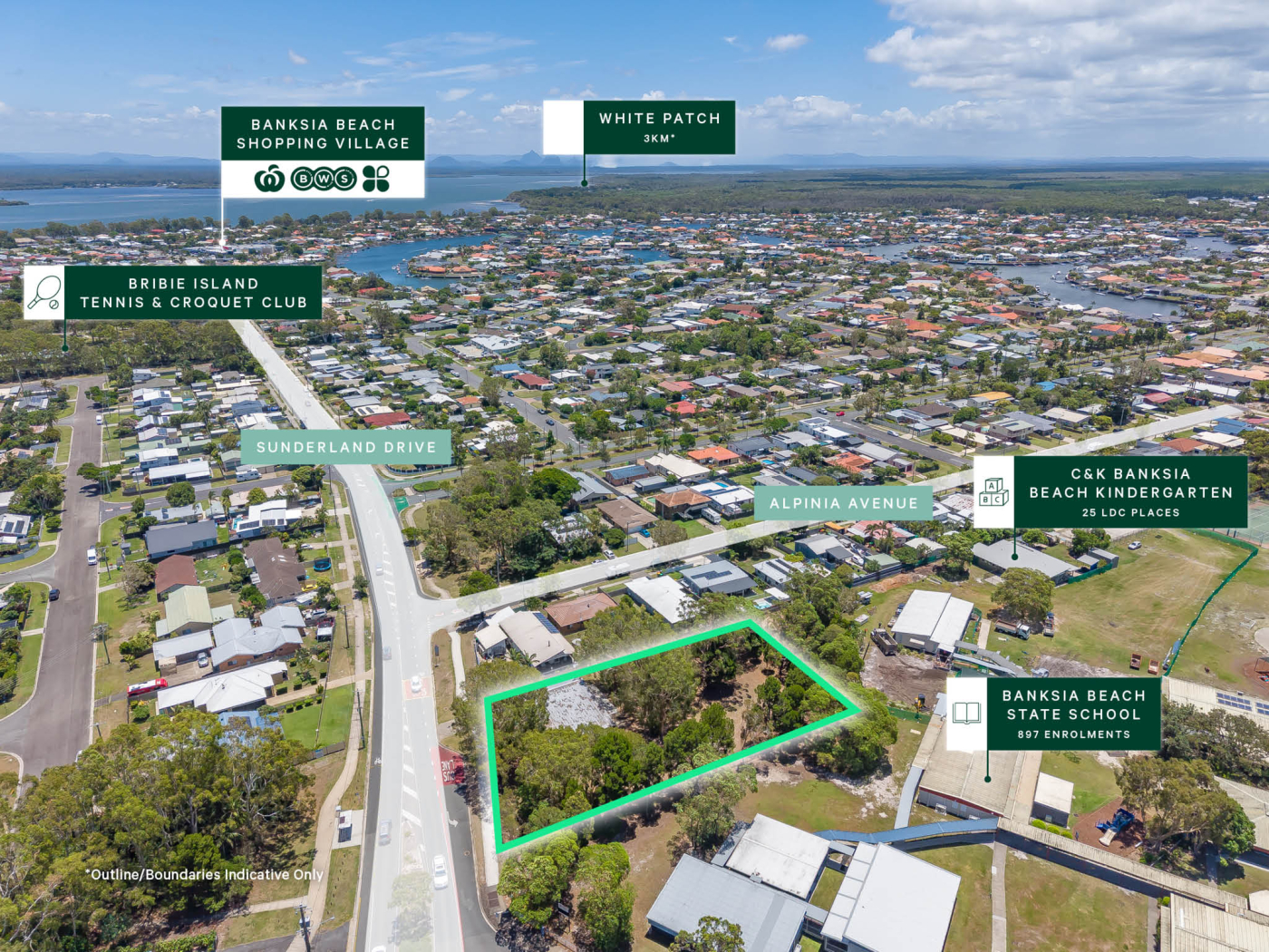 This 2,532sqm* site is zoned General Residential under the Moreton Bay Regional Council planning scheme and occupies a prime position adjacent to Banksia Beach State School. The property enjoys a central location within Bribie Island, just 1.6km from the Banksia Beach foreshore, and is surrounded by established residential housing.