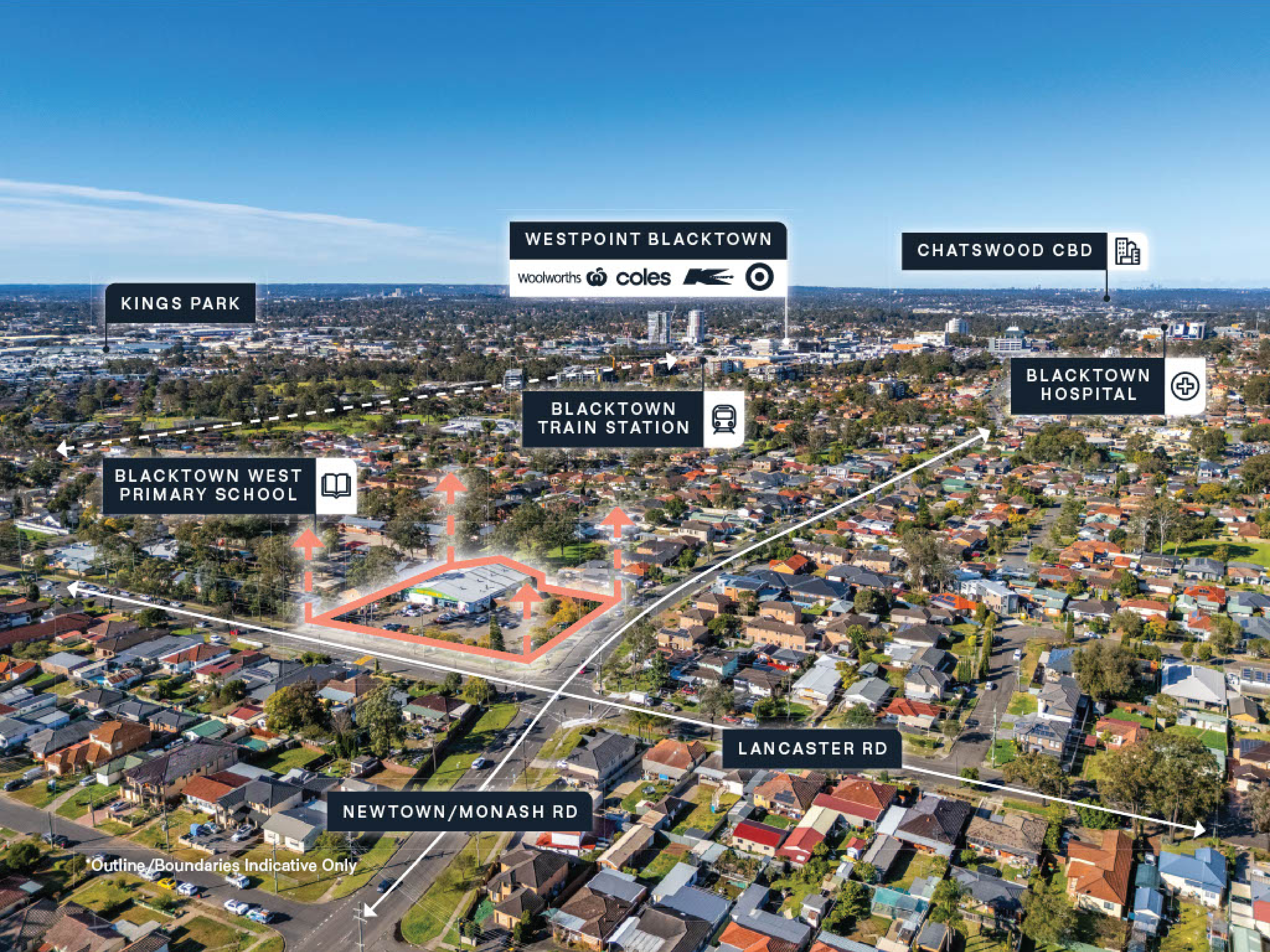 + Significant corner 6,216sqm* landholding with a wide 154m* of dual street frontage, including 73m* to Newton Road, a major arterial into Blacktown CBD