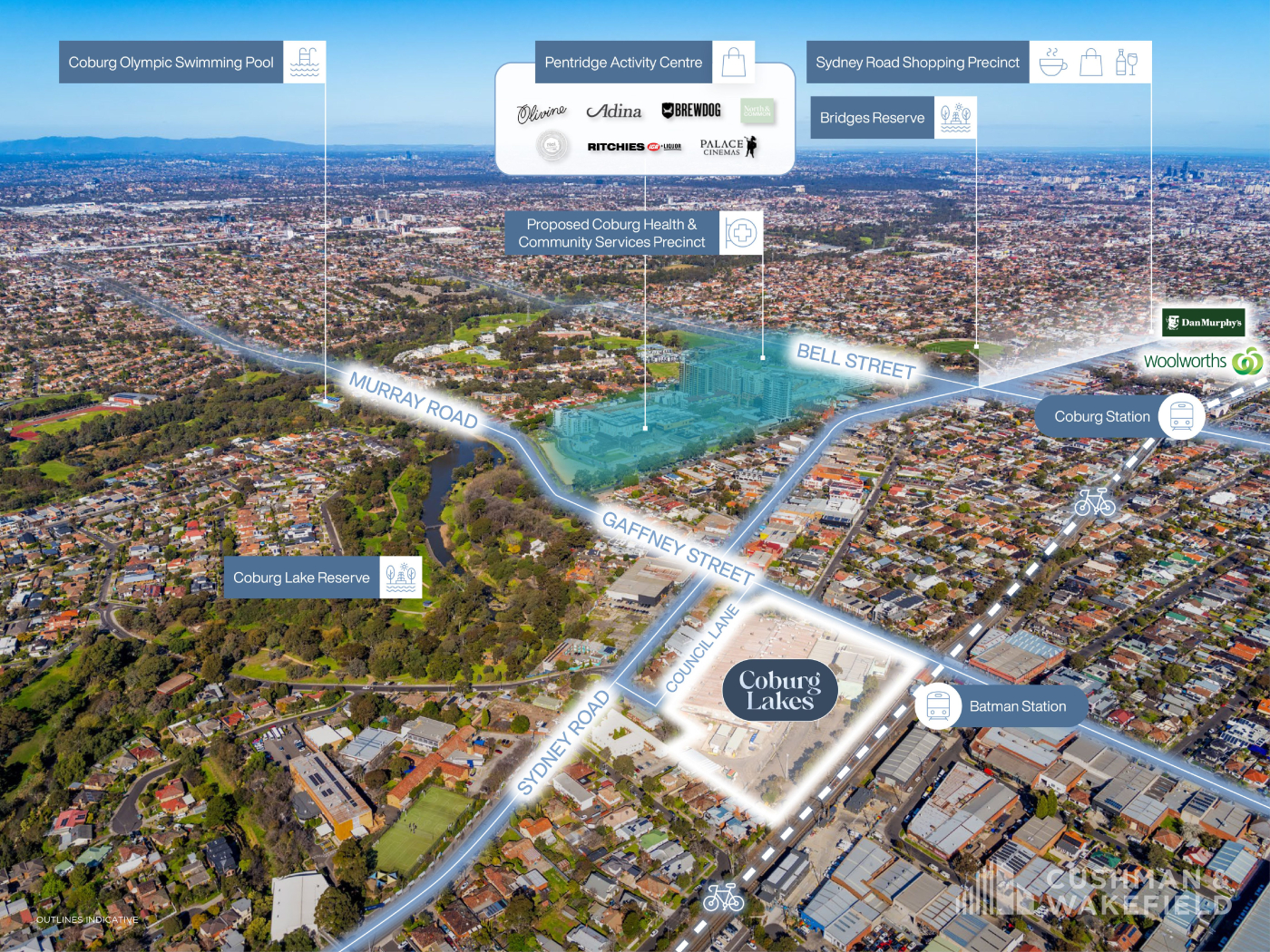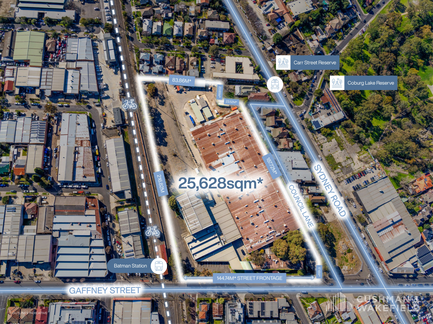 Positioned directly on Batman Train Station and with easy access and potential views to the Coburg Lakes precinct, this unrepeatable major mixed use development site provides a unique opportunity to create a thriving inner-urban master planned community catering to the residential and living sectors.