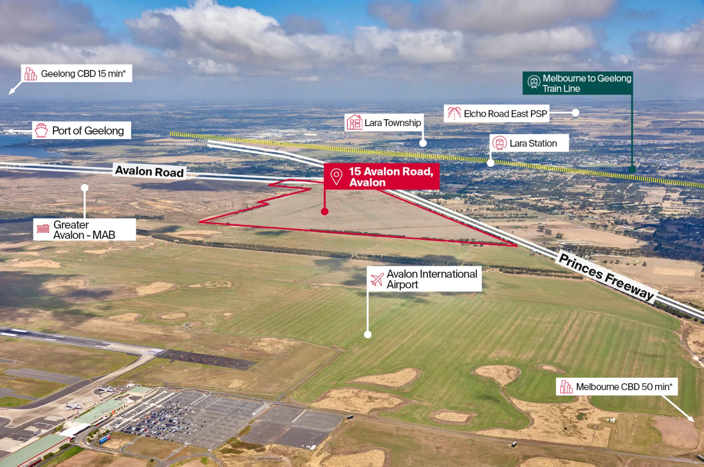 - The gateway site to MAB’s proposed Greater Avalon Project – destined to become Victoria’s largest business park