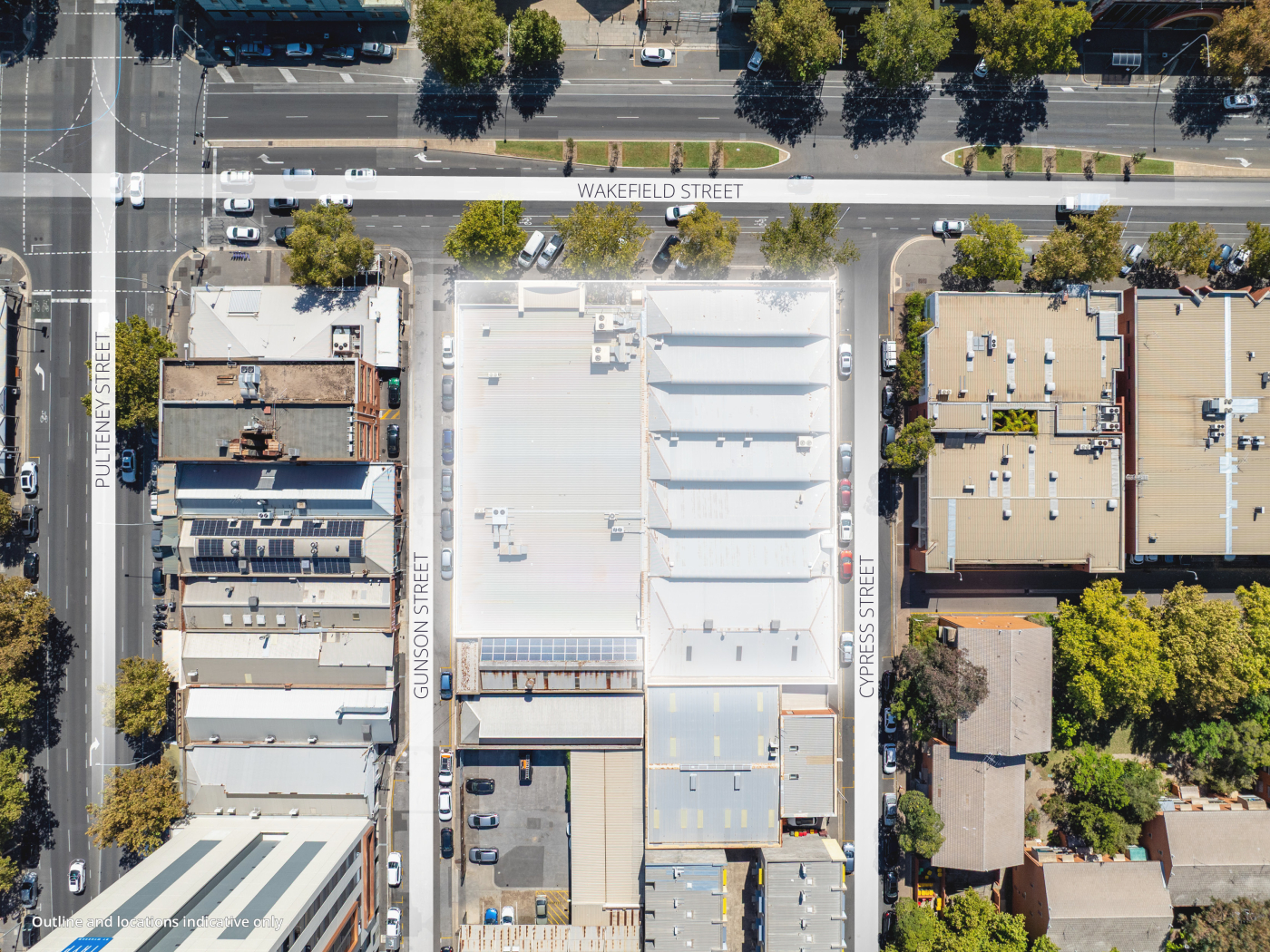 The site provides development flexibility with three street frontages and a total area of 2,715sqm* enjoying access from Wakefield, Cypress, and Gunson Streets. The property is contained in two Certificates of Title.