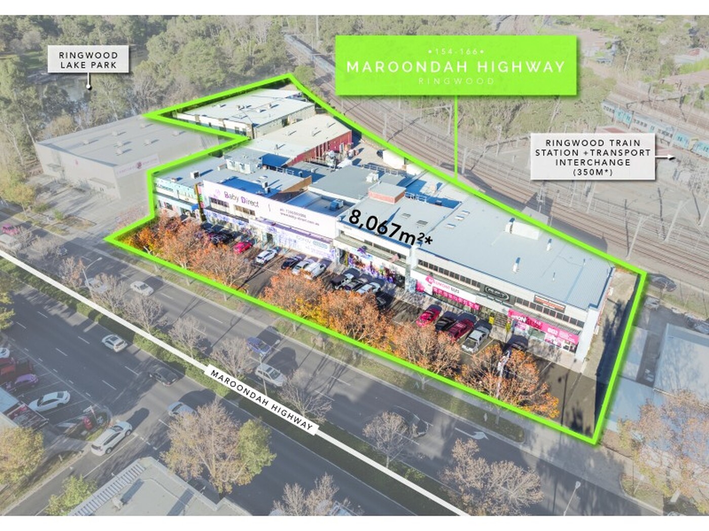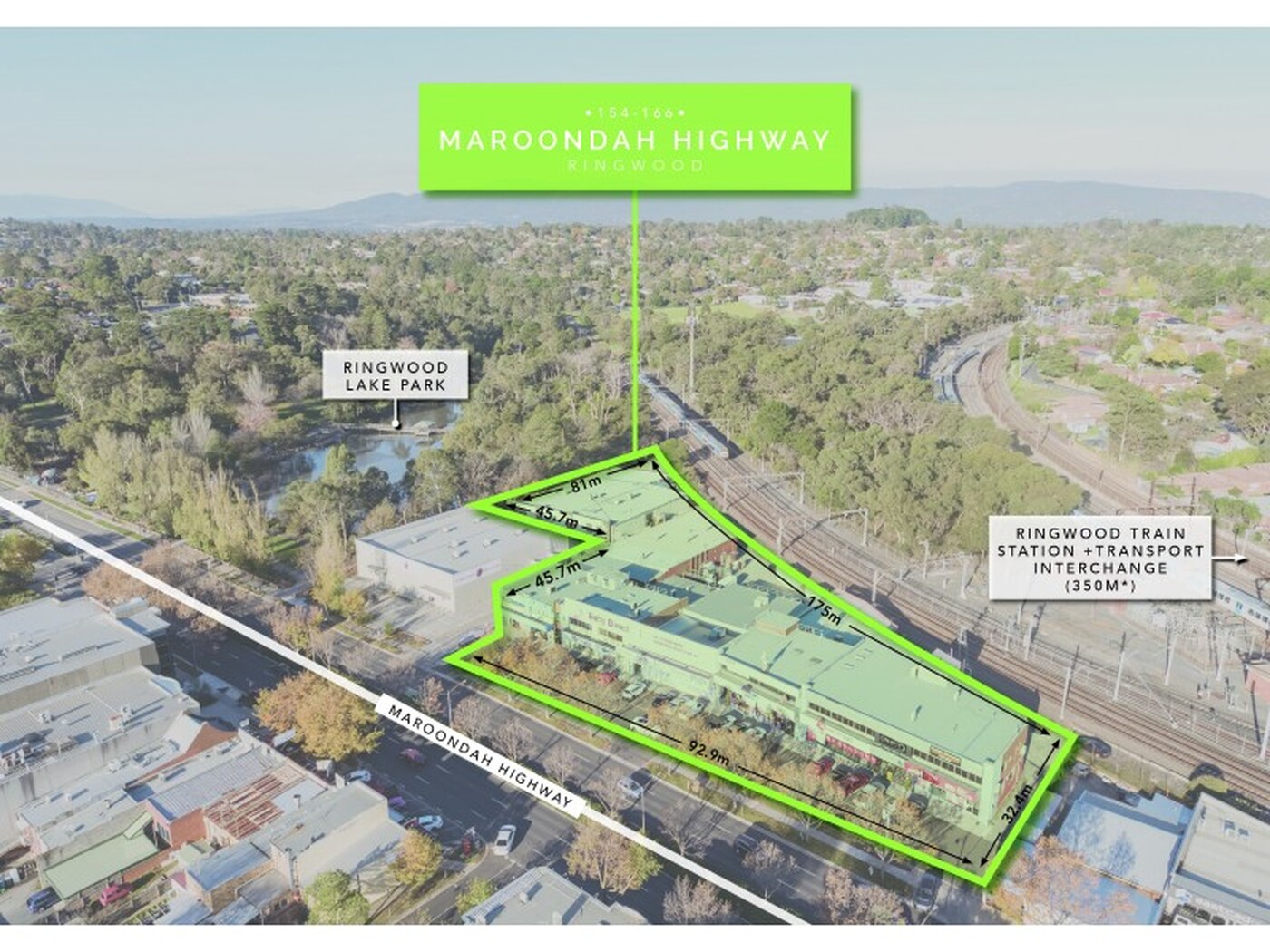 • Significant 93m* frontage to Maroondah Highway and 81m* frontage to Ringwood Lake Park