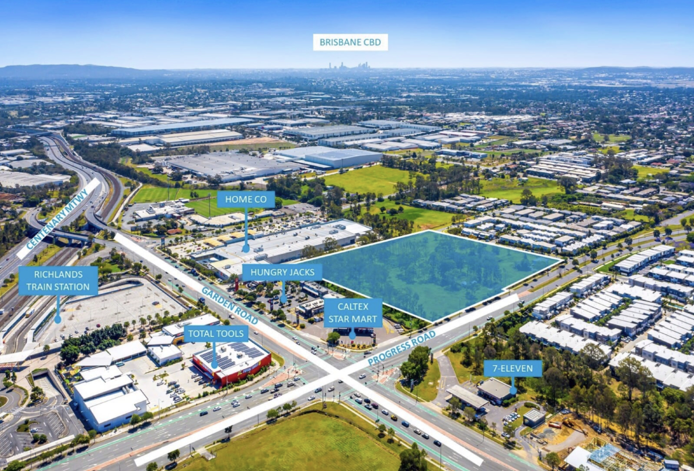 159-177 Progress Rd in Richlands presents a strategic opportunity for to acquire a 3.12 Ha* District Centre zoned development site in Brisbane’s surging western corridor. The large size of the site will appeal to a multitude of potential users as well as developers and investors looking for an ‘at scale’ precinct creating opportunity.