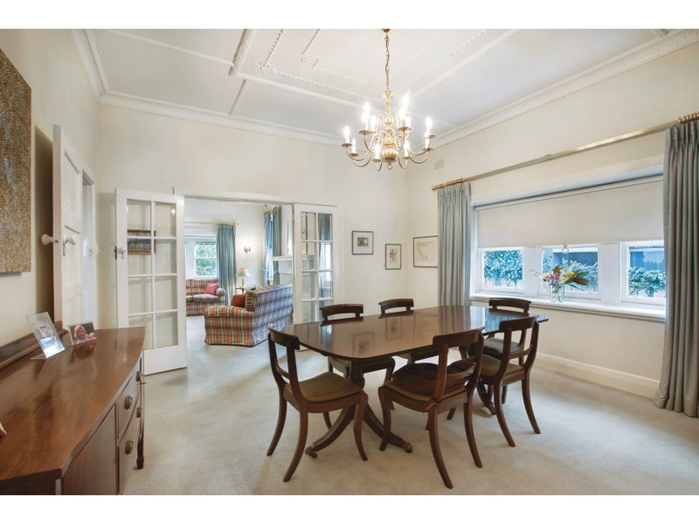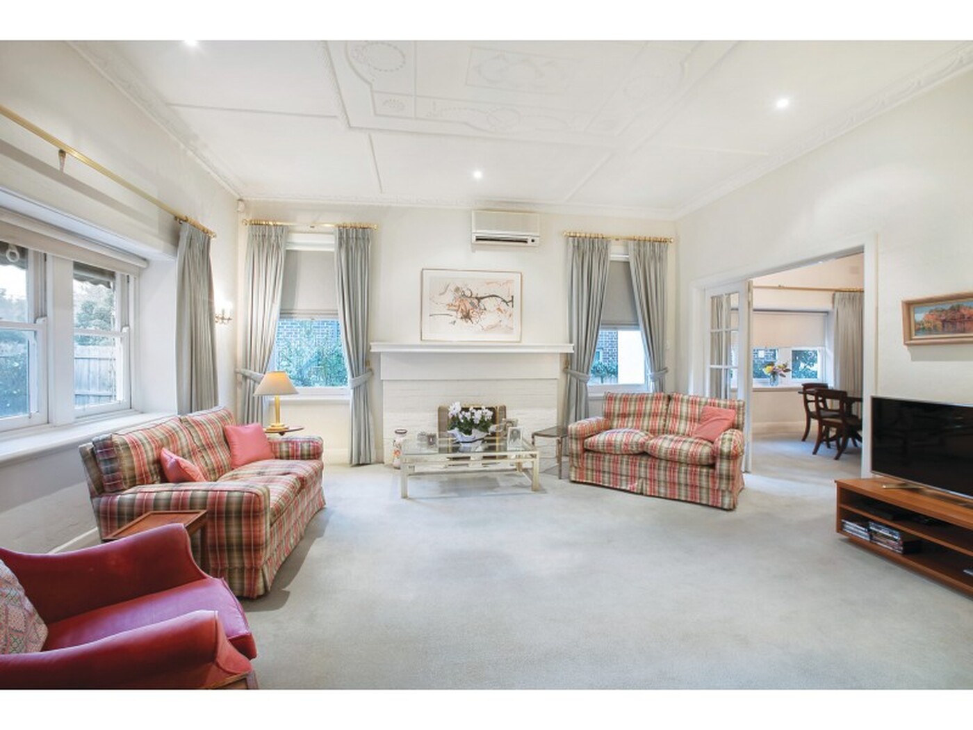 A wide entrance hall with ornate ceilings and leadlight windows flows through to the sitting room with open fireplace and separate formal dining room. A well-appointed kitchen with casual dining area is adjacent to a sunroom which leads out to the expansive northeast garden. The main bedroom with a bay window and built in robe is complemented by two additional bedrooms with built in robes, a study/4th bedroom and two bathrooms.