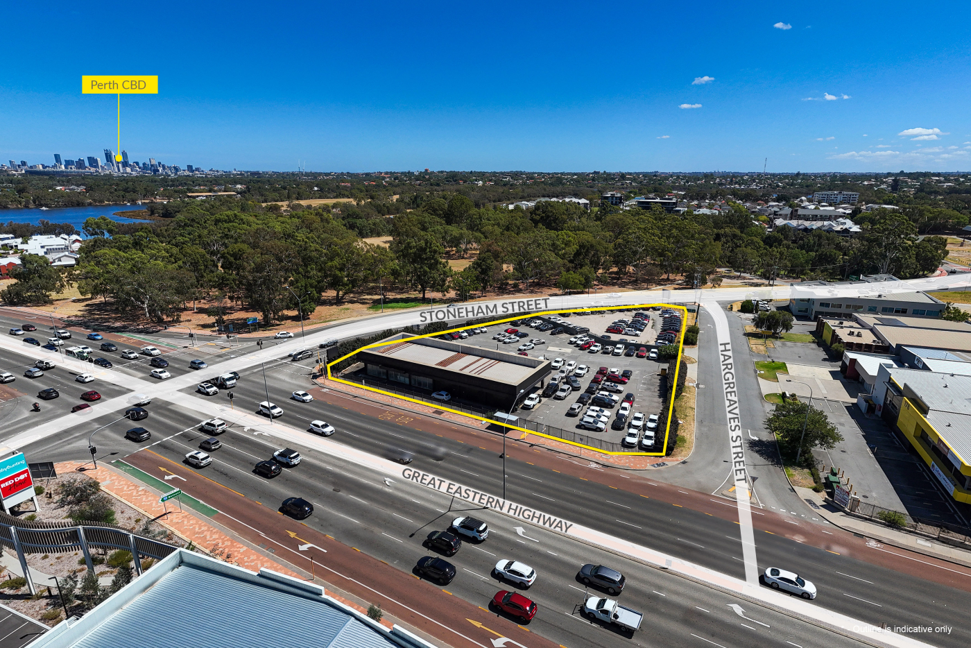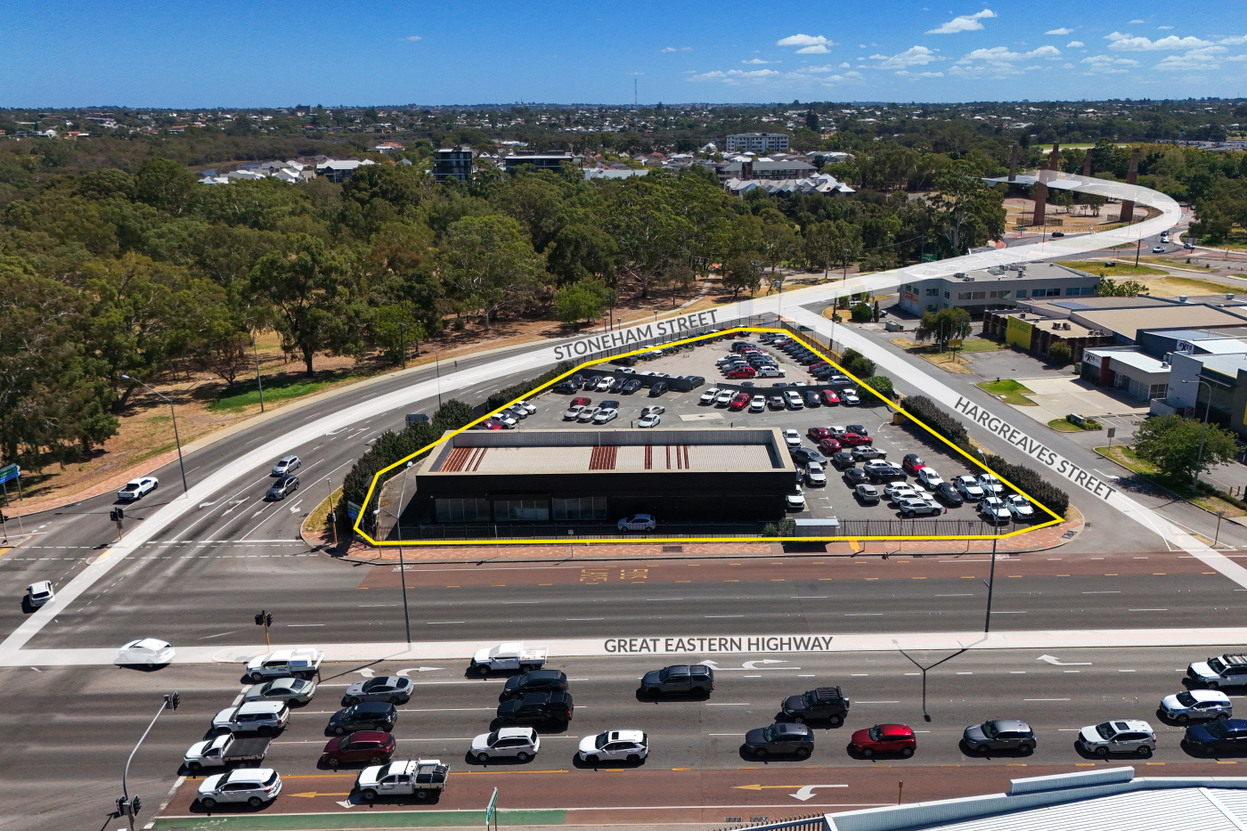 • 78m frontage to Great Eastern Highway, 89m frontage to Stoneham & 109m frontage to Hargreaves.