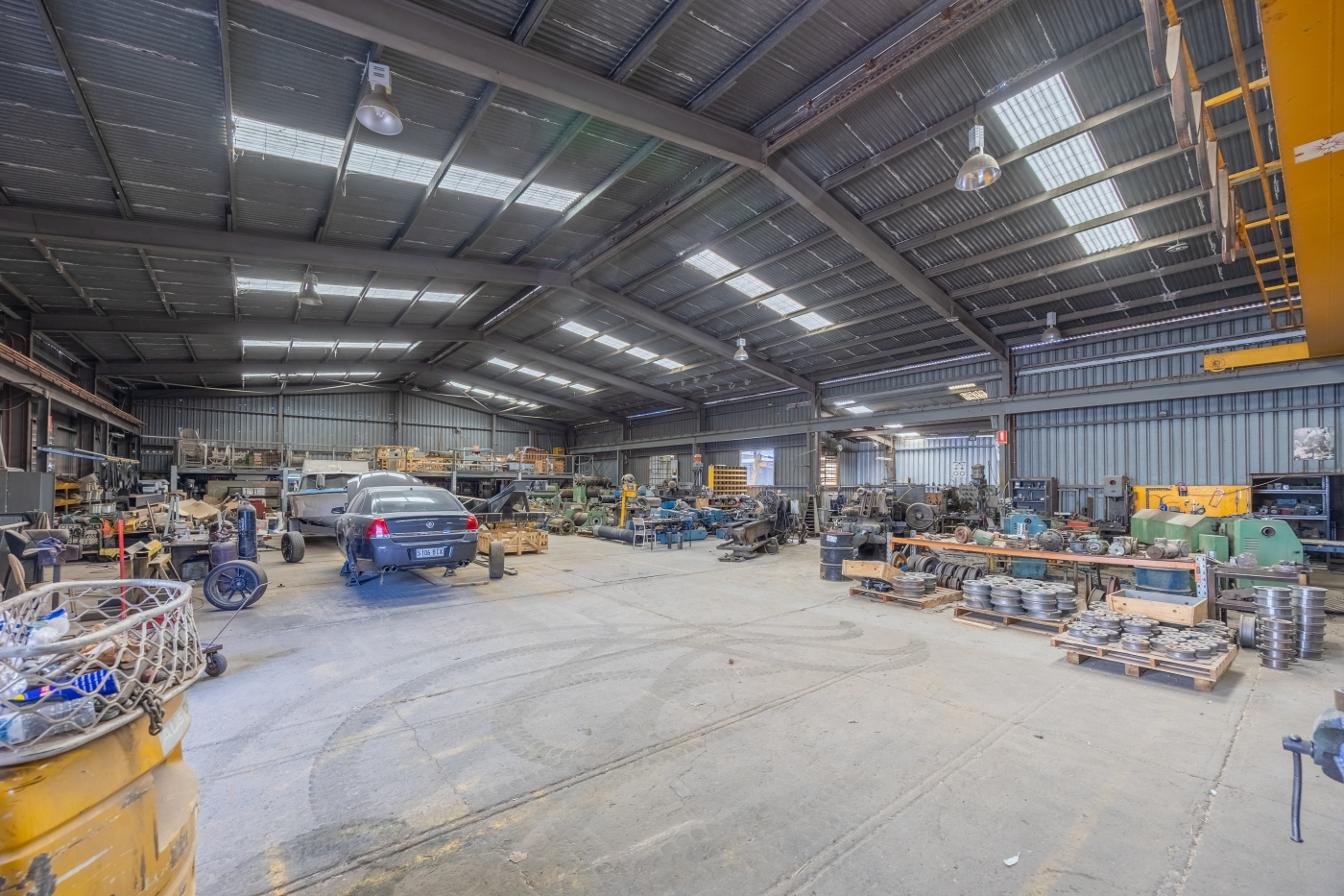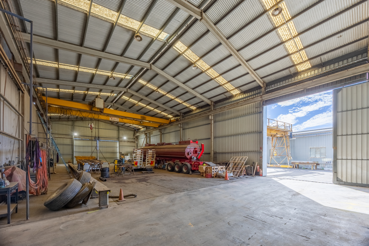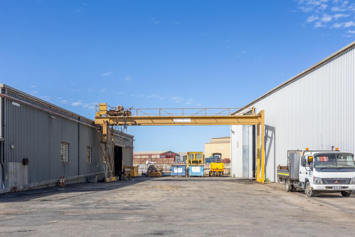 - Two high clearance warehouses with overhead gantry cranes