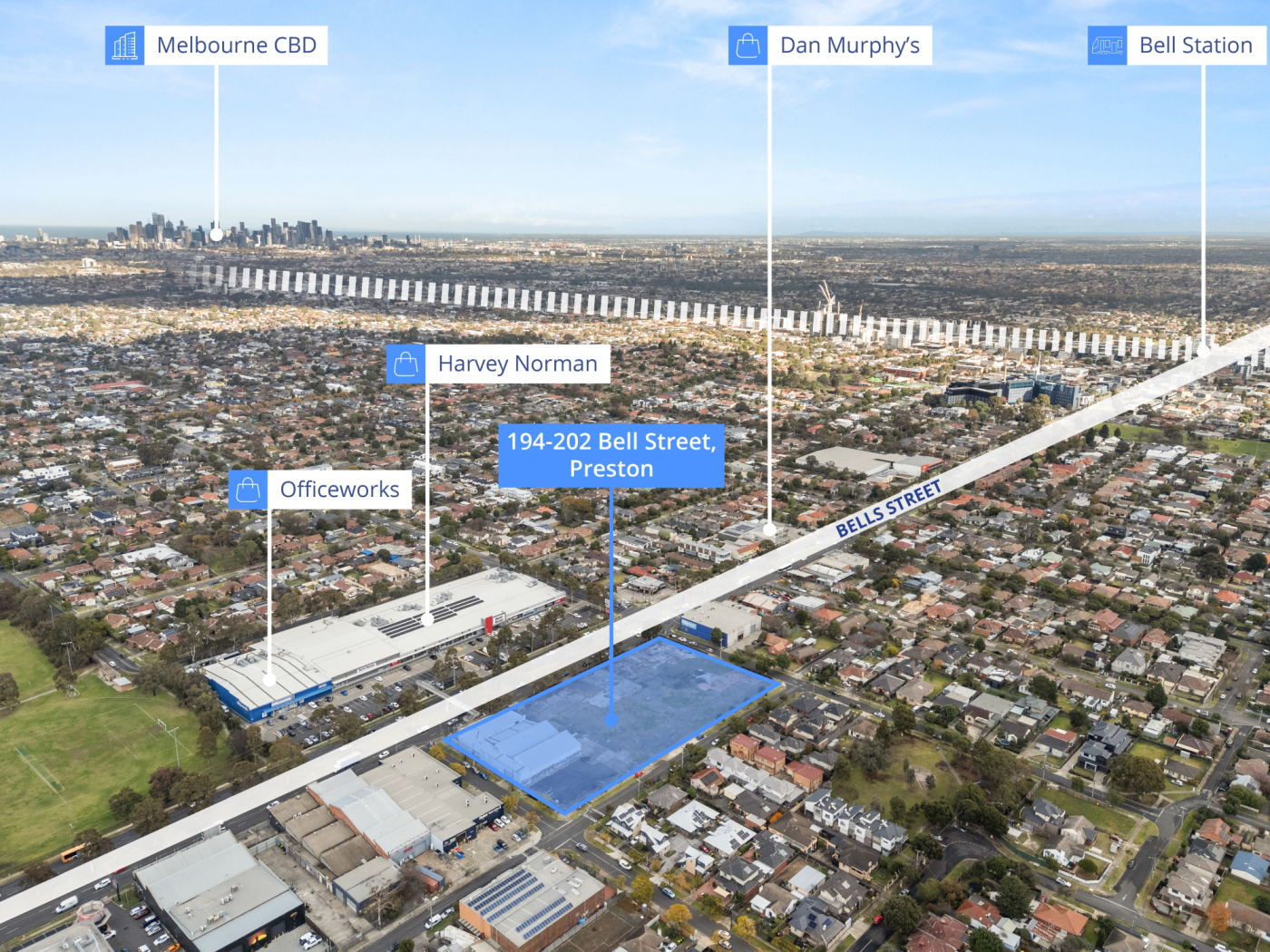 A rare opportunity to secure an island site, strategically located approximately 9.5km north of the Melbourne CBD, the site benefits from immediate access to Bell Street, providing excellent connectivity to major arterials including the M80 Metropolitan Ring Road and M3 Eastern Freeway.