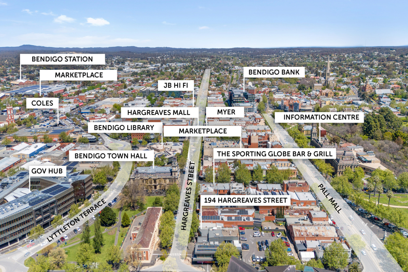 Positioned along one of Bendigo’s most active commercial corridors, 194 Hargreaves Street sits at the centre of the city’s civic, government and retail precincts — ensuring strong daily foot traffic and deep amenity for future occupants.