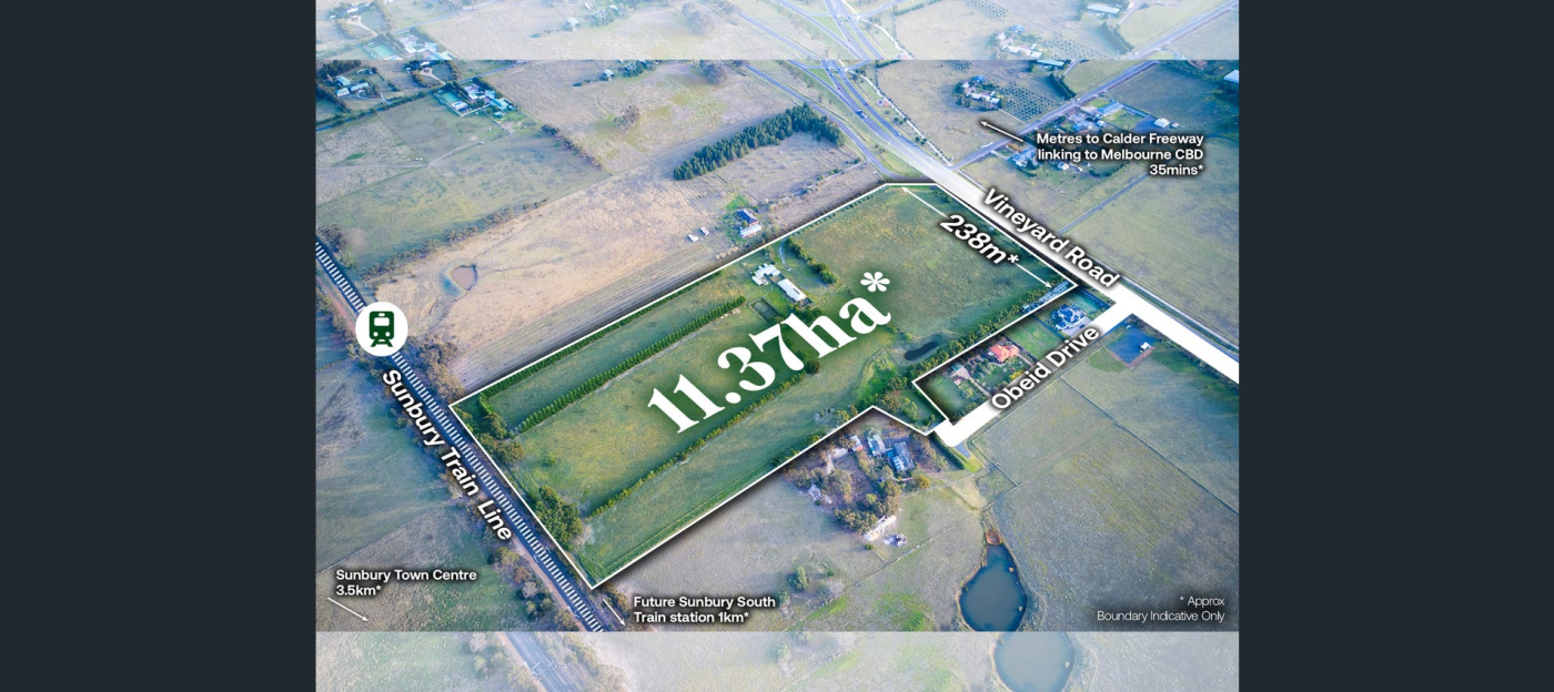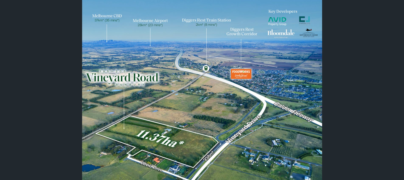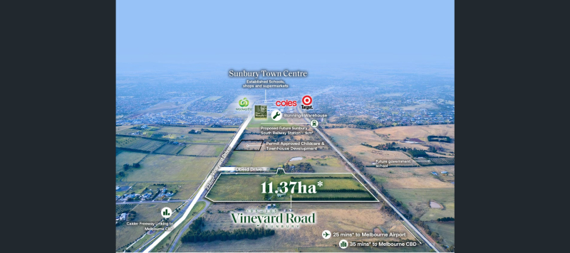Stonebridge Property Group is pleased to present for sale 195-205 Vineyard Road, Sunbury, a premium 11.37 hectare* residential and commercial development opportunity centrally positioned in one of the fastest growing satellite cities in Victoria.