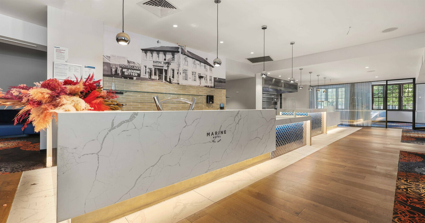 Former Marine Hotel which features a two-level freehold building, a former drive through bottle shop and an expansive 70 space* car park.