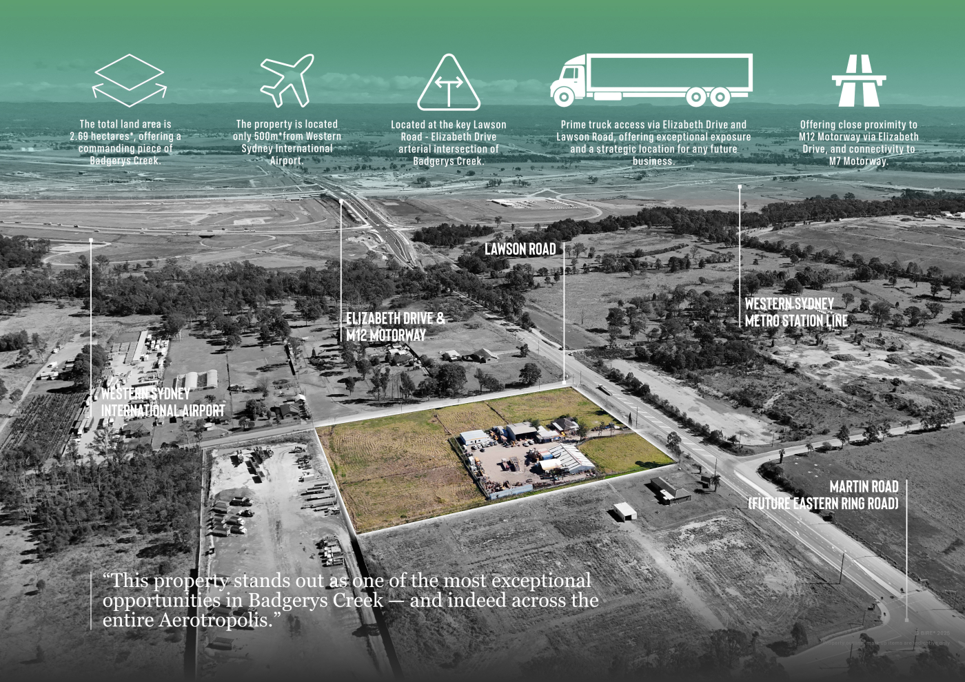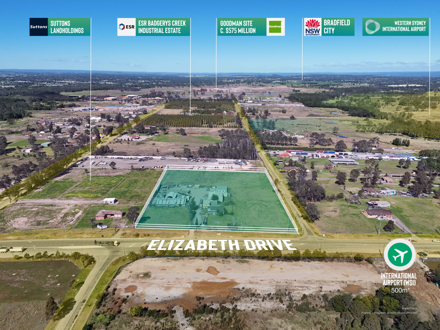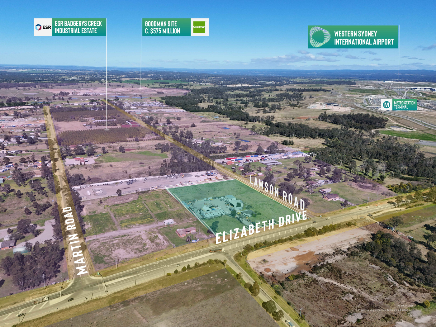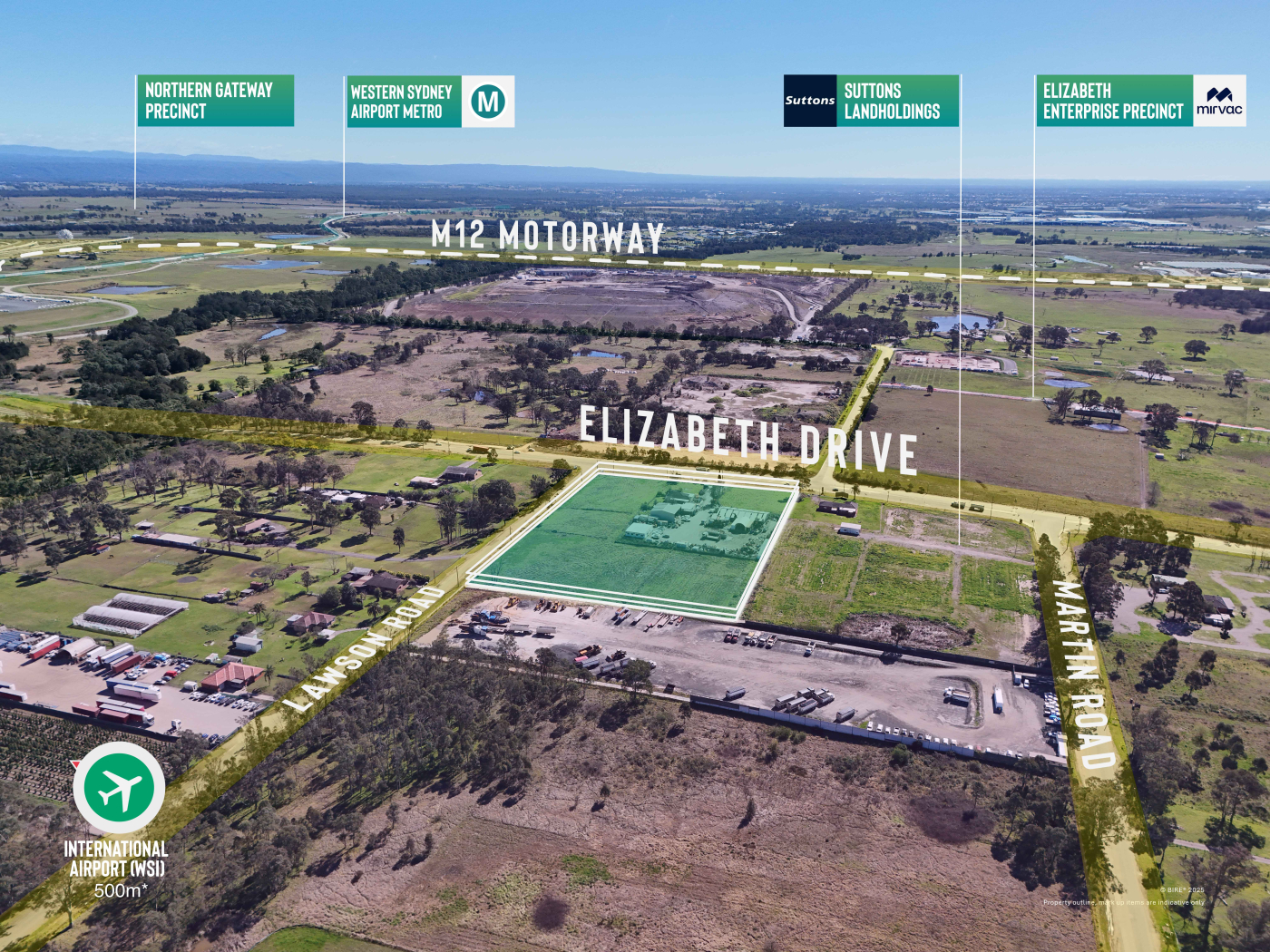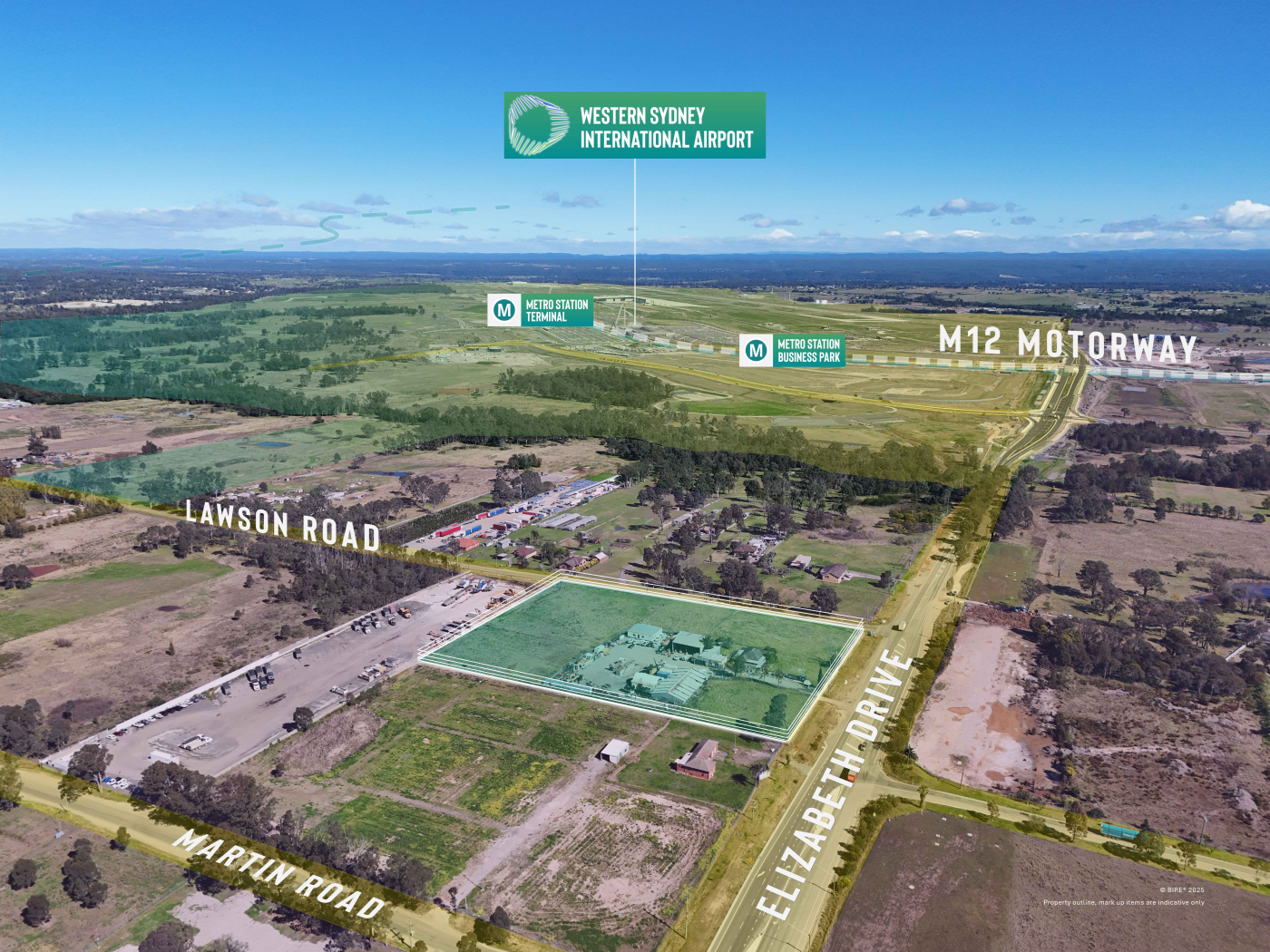 Strategically positioned on a prominent corner, this significant landholding commands exceptional exposure to Elizabeth Drive and Lawson Road and benefits from its proximity to the Western Sydney International Airport and the soon-to-be-completed M12 Motorway.