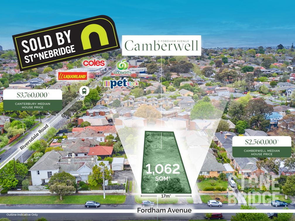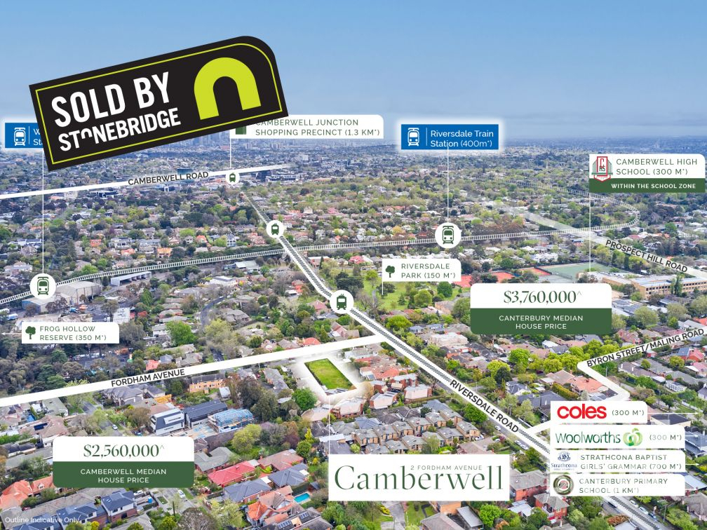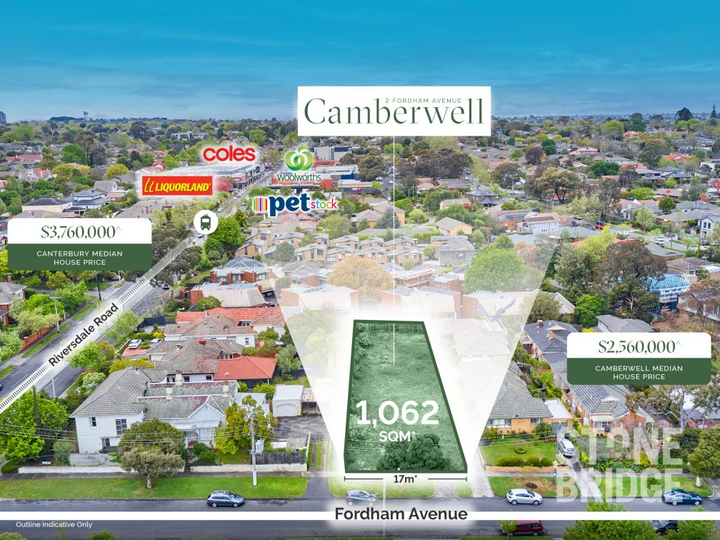 Stonebridge Property Group is pleased to present for sale a permit approved development opportunity at 2 Fordham Avenue, Camberwell. Situated on a landholding of 1,062 sqm*, this is an unrepeatable permit situated just off Riversdale Road, and a street away from being a Canterbury address.