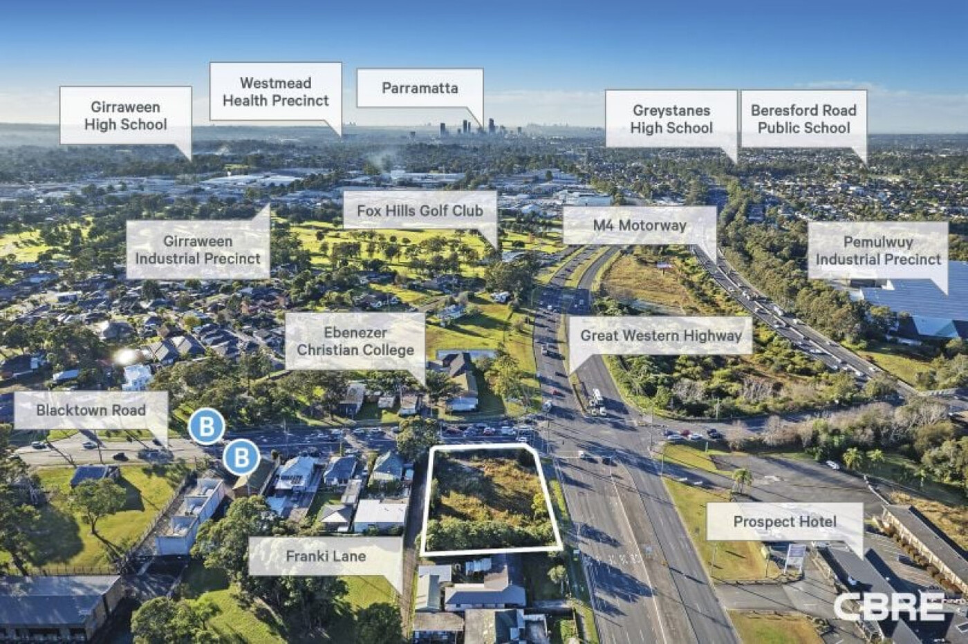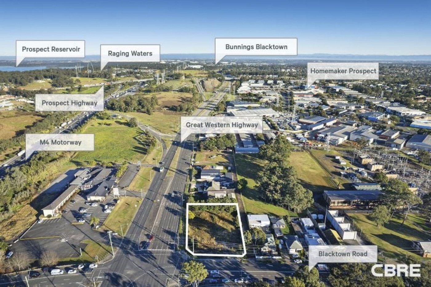 CBRE are pleased to present 2 Great Western Highway, Prospect to the market for sale via auction. The property features a flat, vacant block spanning 2,142 sqm* with triple street frontages to the Great Western Highway, Franki Lane, and Blacktown Road. This prime location ensures high exposure and convenient access for construction and future residents.