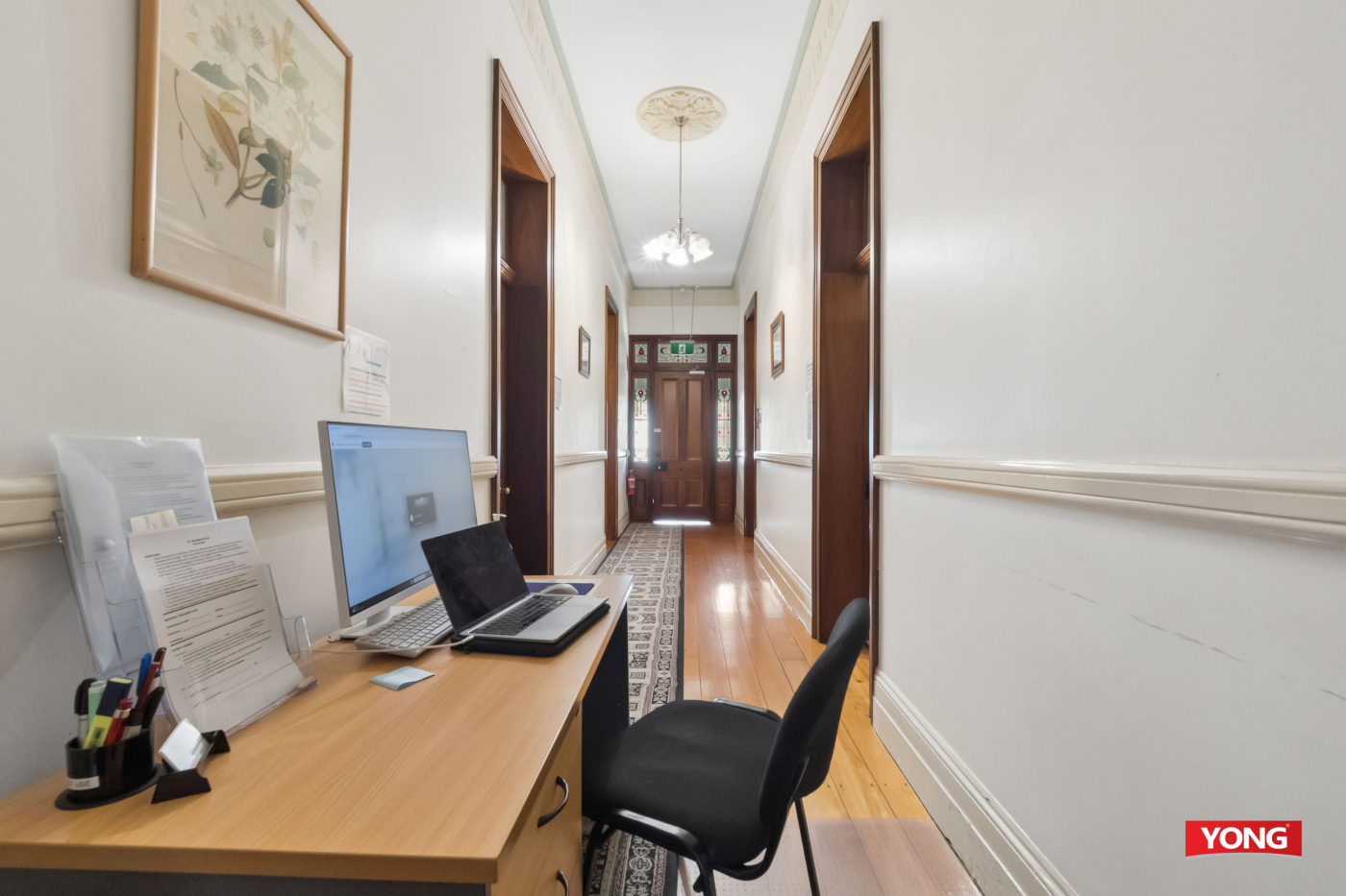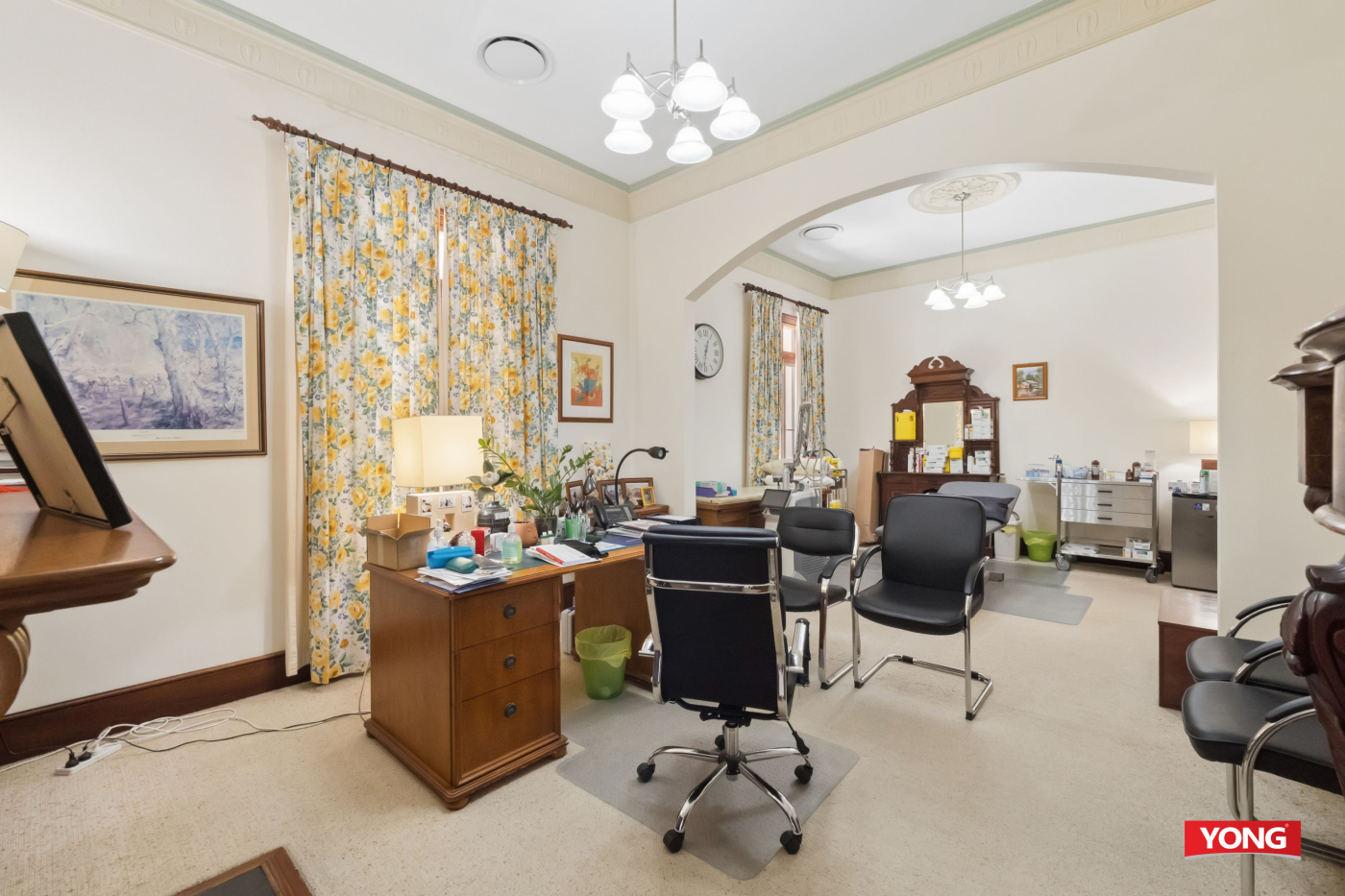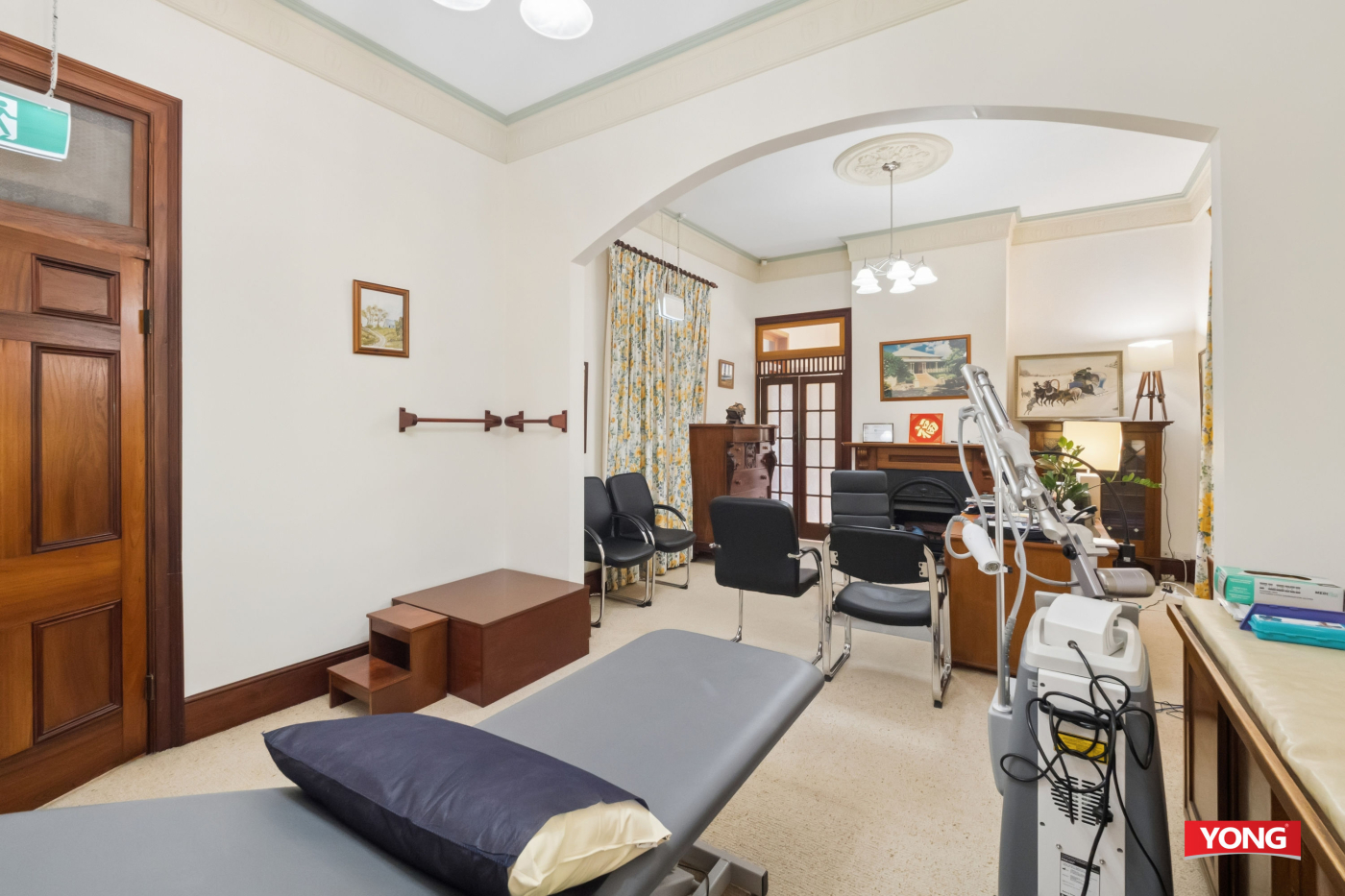 Originally constructed in the late 1880s and tightly held by only two families prior to its commercial conversion, the property has been thoughtfully renovated and is currently configured as a medical consulting practice. The flexible layout includes multiple consultation rooms, spacious reception and waiting areas, staff amenities, and on-site parking, supporting immediate occupation or adaptation to suit various business needs.