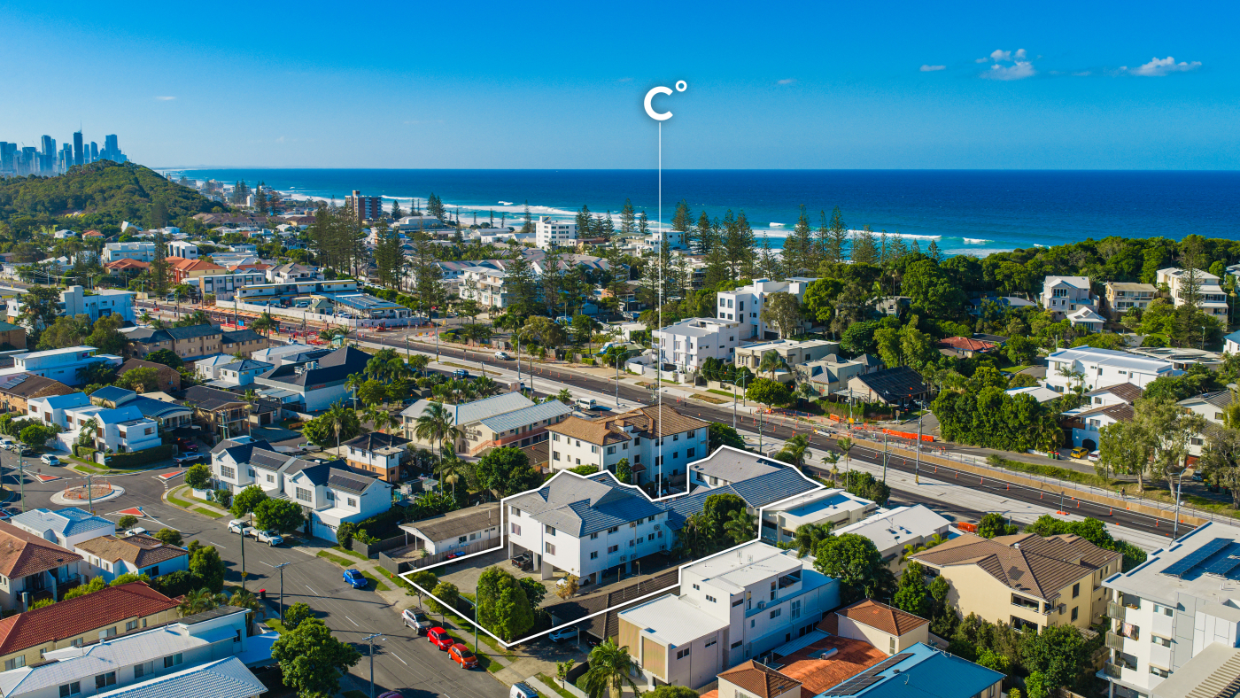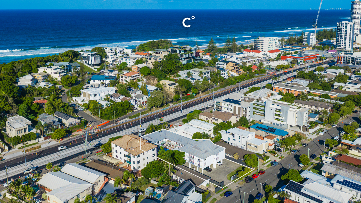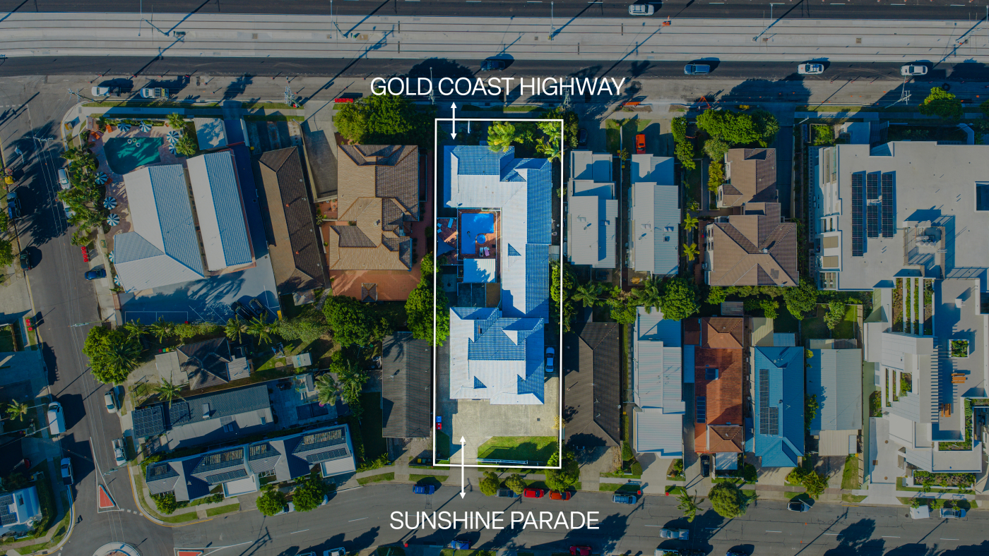 • 24.5m of Gold Coast Highway Street frontage, 24.5m Sunshine Parade frontage
