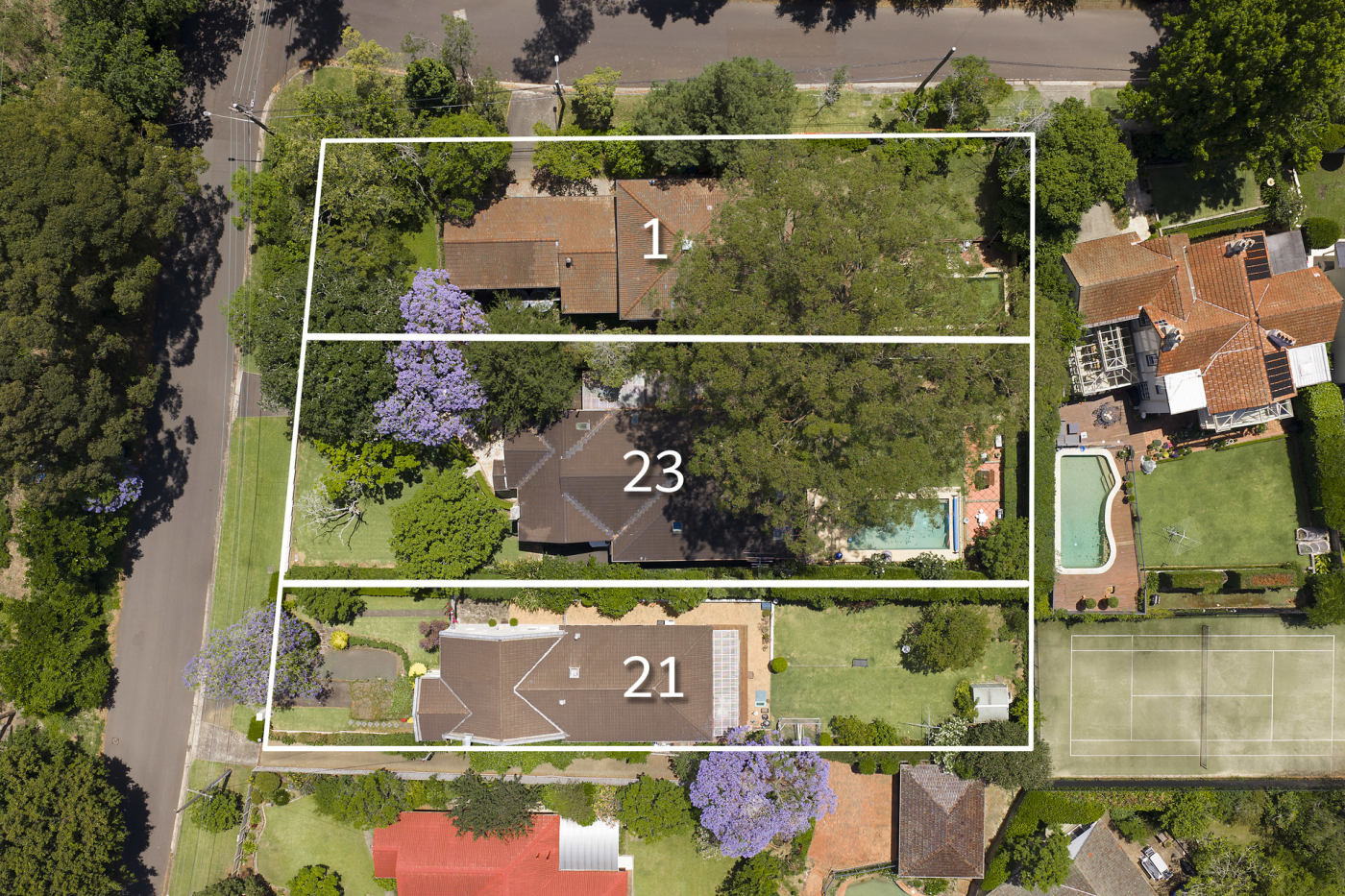 - Three properties in one line – approx. 3,431sqm total site area