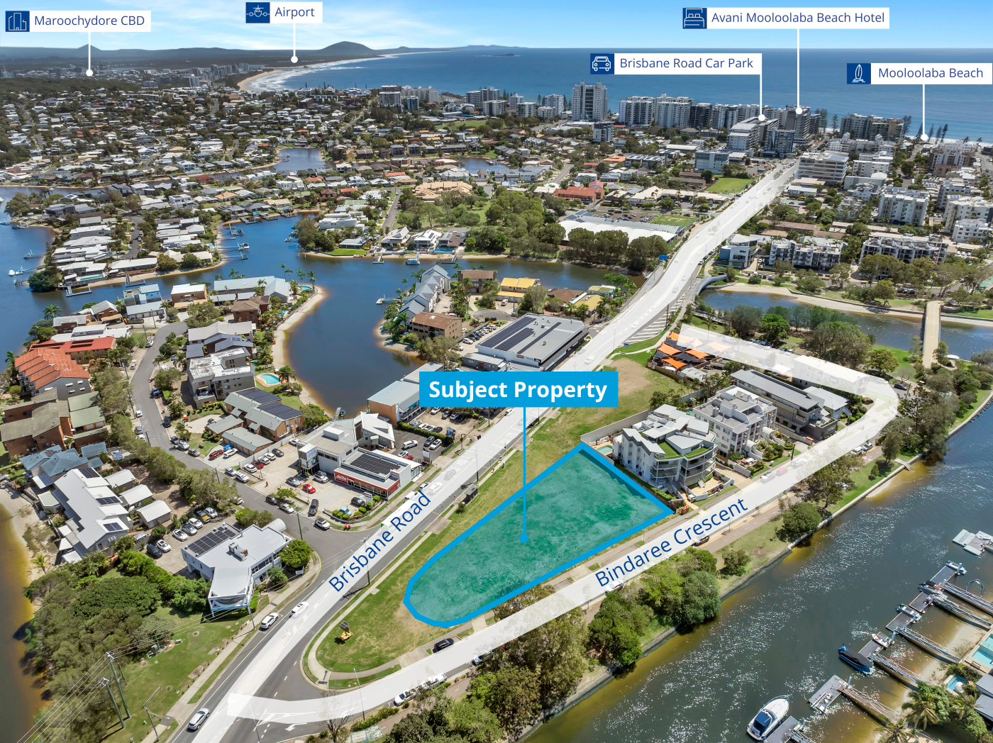 Colliers present a limited opportunity to secure a vacant Mooloolaba riverside development site within one of the Sunshine Coast’s most tightly held precincts. 21 Bindaree Crescent occupies a prominent corner position across from the Mooloolah River, offering Mooloolah River views and potential ocean views, just a short walk from the Mooloolaba beachfront, cafes, restaurants and shops.