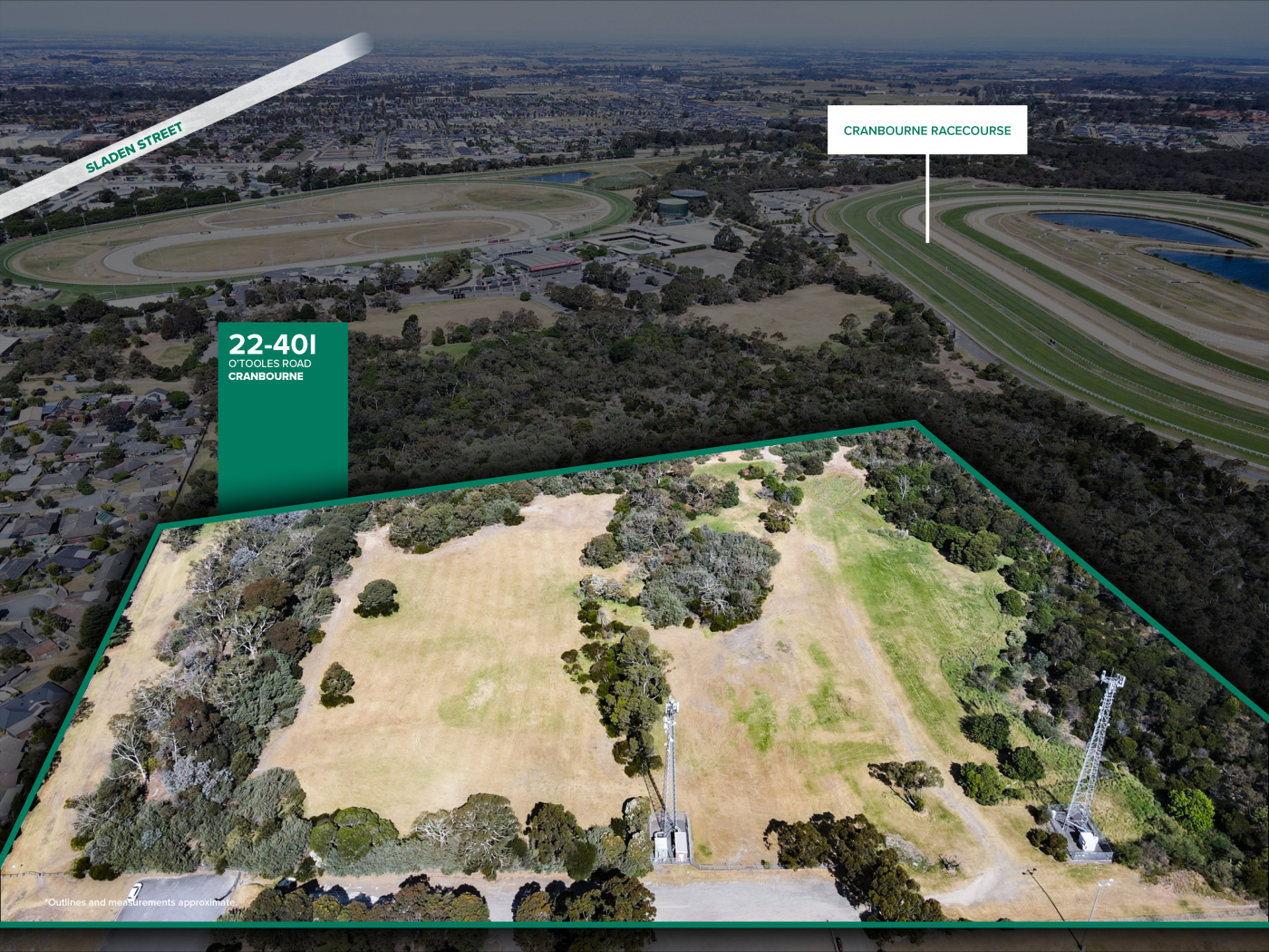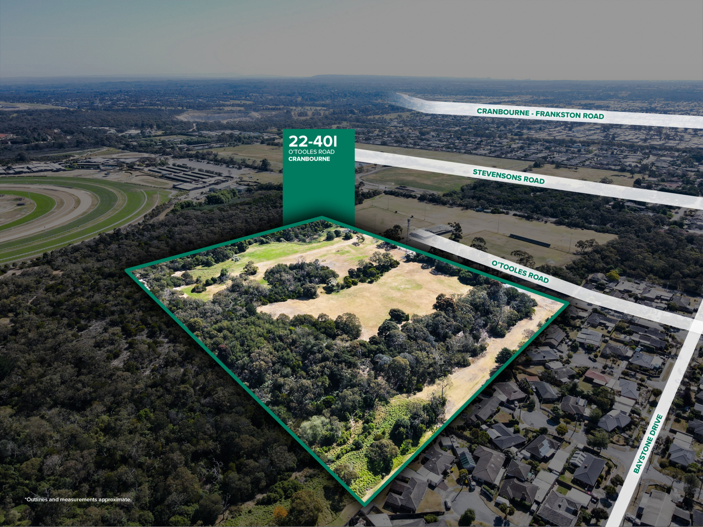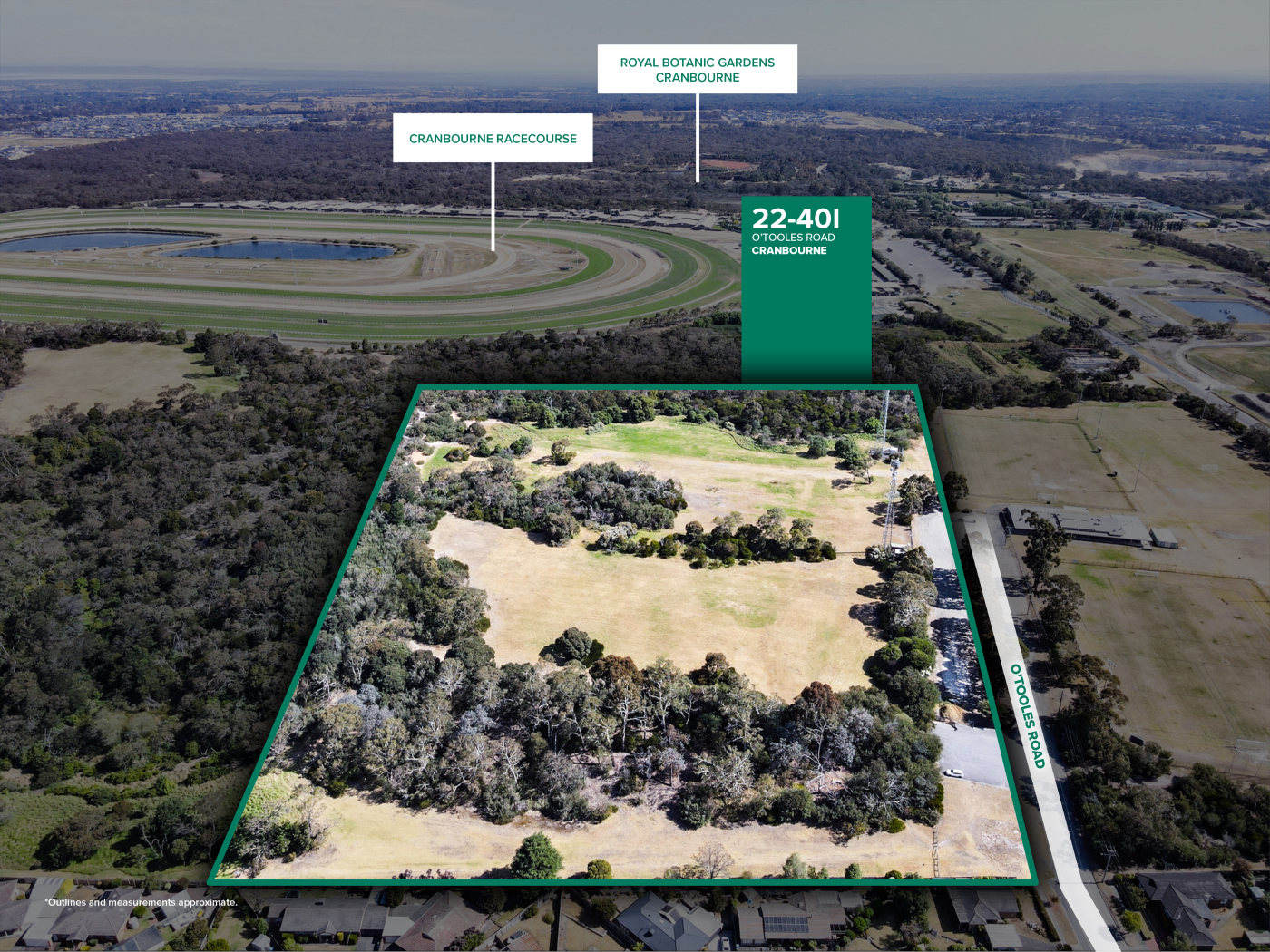 Cameron is delighted to invite Expressions of Interest to purchase 22–40I O’Tooles Road, Cranbourne — a significant landholding comprising two titles and totalling approximately 8.07 hectares, Zoned Special Use Zone – Schedule 6 (SUZ6) and strategically positioned alongside the Cranbourne Racecourse precinct and surrounded by established and growing residential catchments.