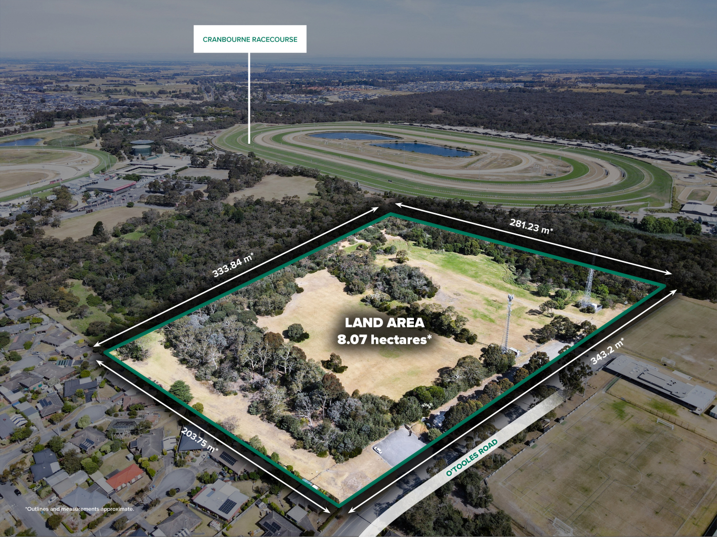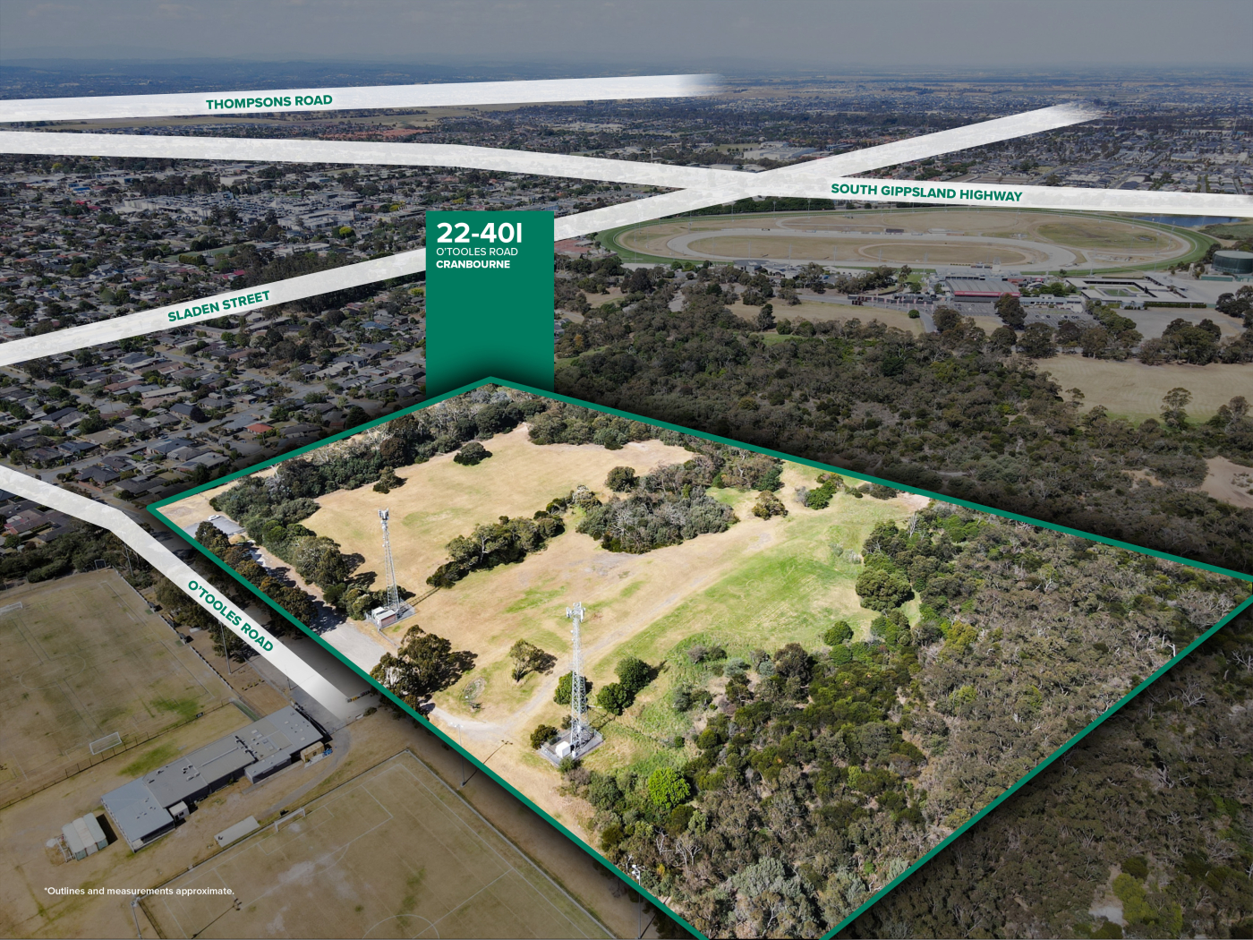The property benefits from an expansive 343m frontage* to O’Tooles Road and provides convenient connectivity to key arterials including South Gippsland Highway and Cranbourne–Frankston Road via Sladen Street.