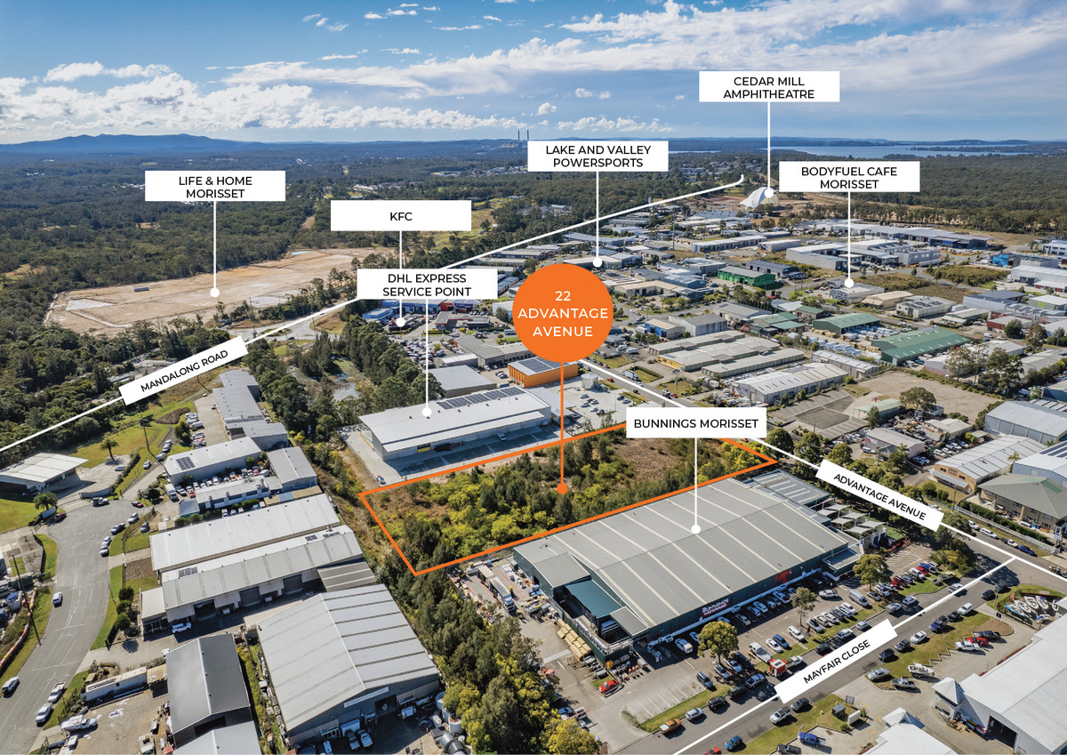22 Advantage Avenue, Morisset offers a prime 11,290sqm E4 General Industrial site* positioned just 2 minutes from the Pacific Highway*. Neighbouring Bunnings and DHL, the property provides excellent frontage, strong exposure and seamless connectivity to Newcastle, Sydney and the Central Coast.