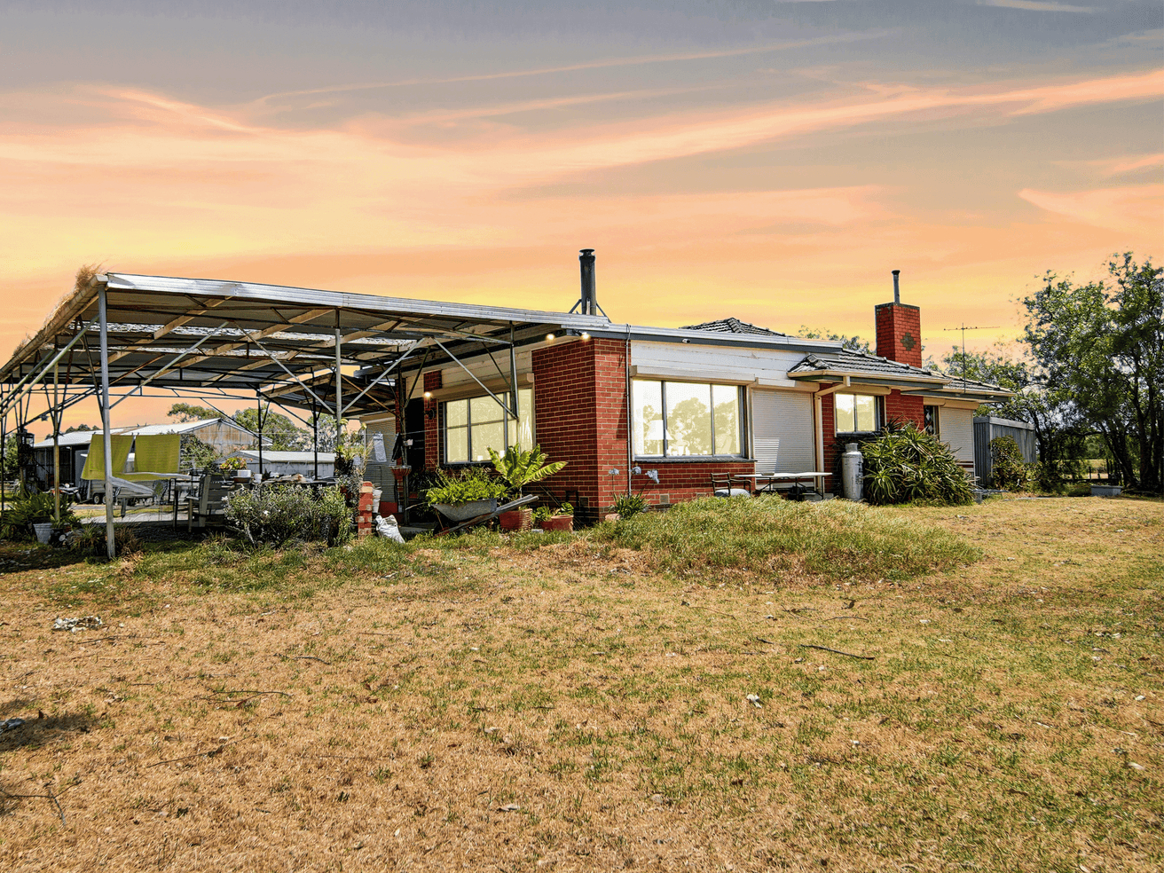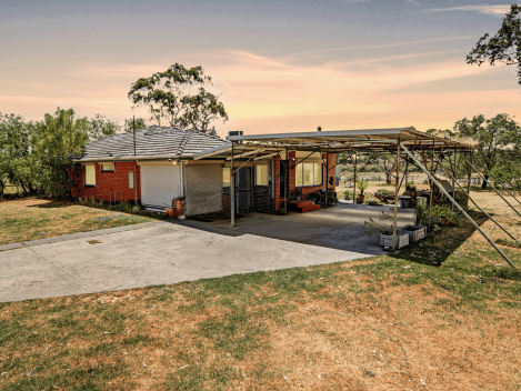 At the heart of the property sits a solid brick veneer residence in good condition, offering generous living and dining zones complemented by a separate rumpus room, creating flexible spaces for family living and entertaining. The kitchen is well equipped with a rangehood, gas hot plates, electric wall oven and an abundance of bench and cupboard space. Three spacious bedrooms with robes are serviced by a central bathroom with shower and vanity, along with a separate toilet, while a large practical foyer/mudroom adds everyday convenience. Comfort is assured year-round with split-system air conditioning and Coonara heating and the home is further supported by a double carport.