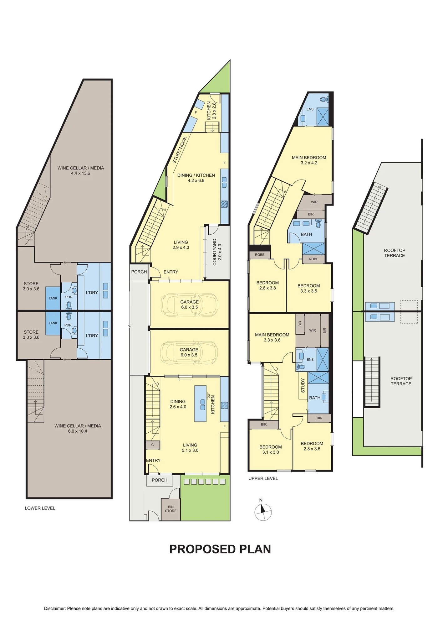 A clean slate that is currently a carpark, this singular offering holds fabulous appeal for the astute buyer or developer with plans for two designer homes arranged over four expansive levels. Each dwelling comprises three bedrooms with robes, two bathrooms, master with a walk-in robe and ensuite, spacious open plan living with designer kitchens, media and store rooms that might make an ideal cellar plus a garage and expansive entertainers rooftop with panoramic views.