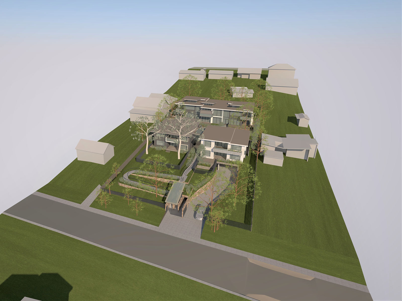 Set across two north-east-facing lots, the site enjoys an elevated position with leafy district views, surrounded by quality residential homes.
