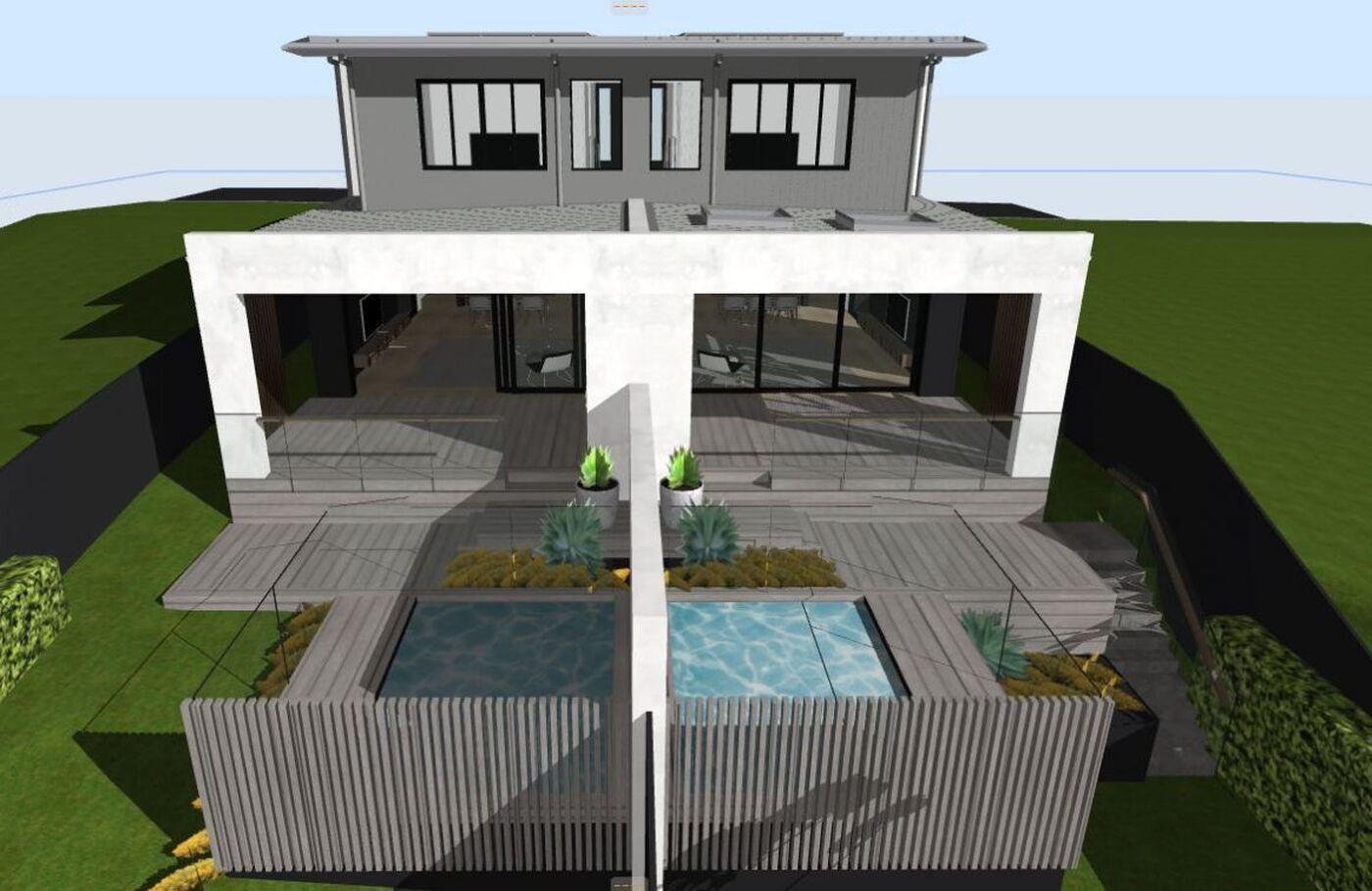 - North facing yards, decks and pools